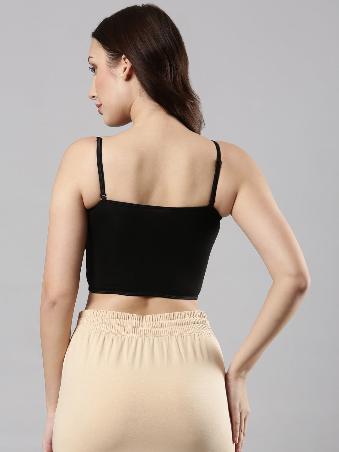 Women's Cotton Crop Top with Adjustable Straps and Detachable Pads Black