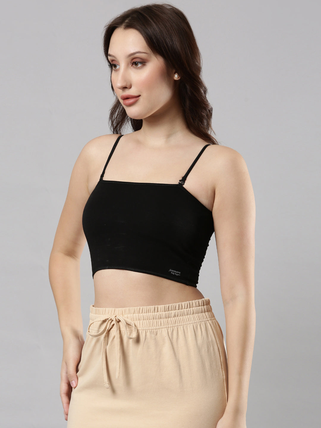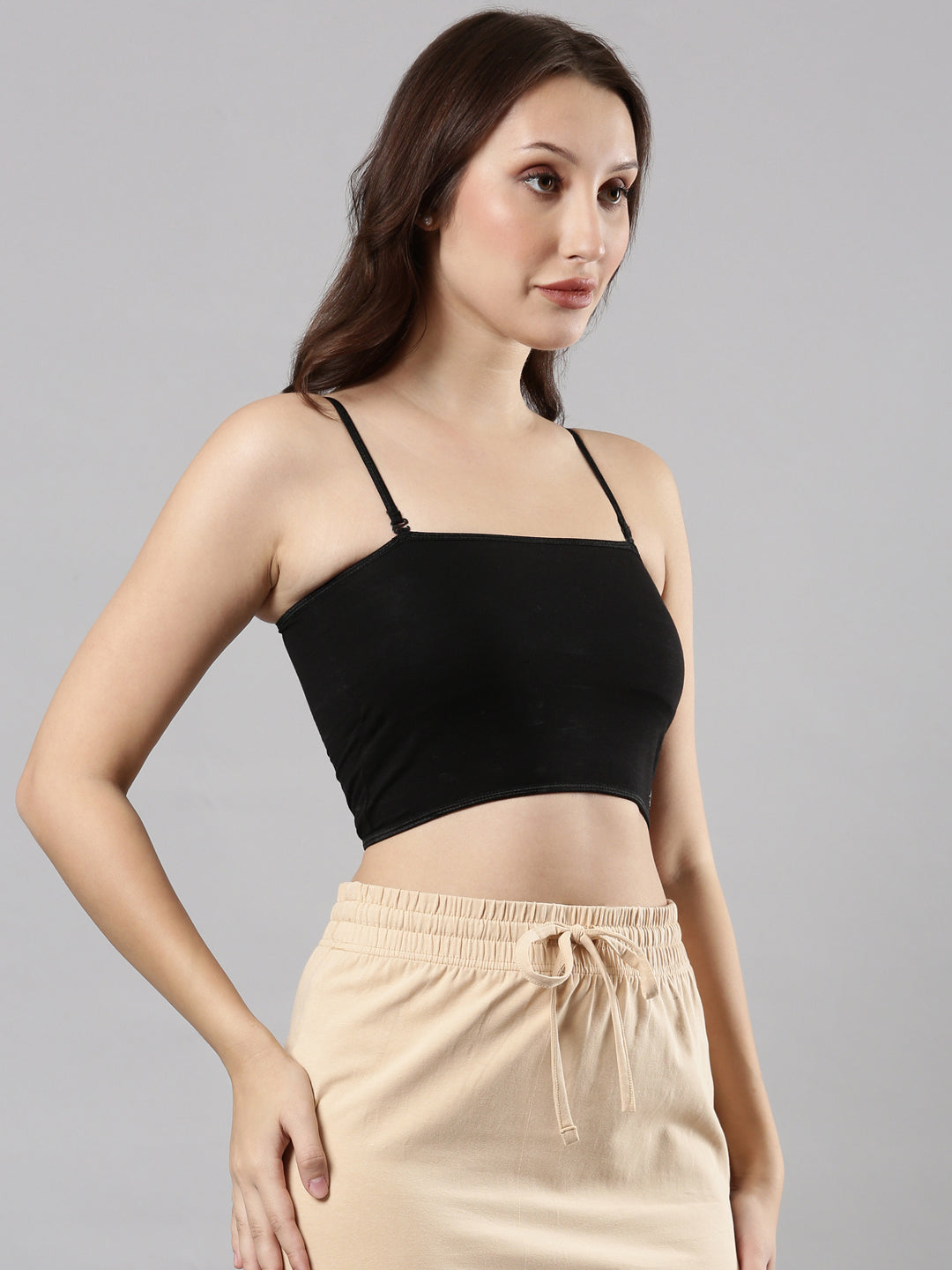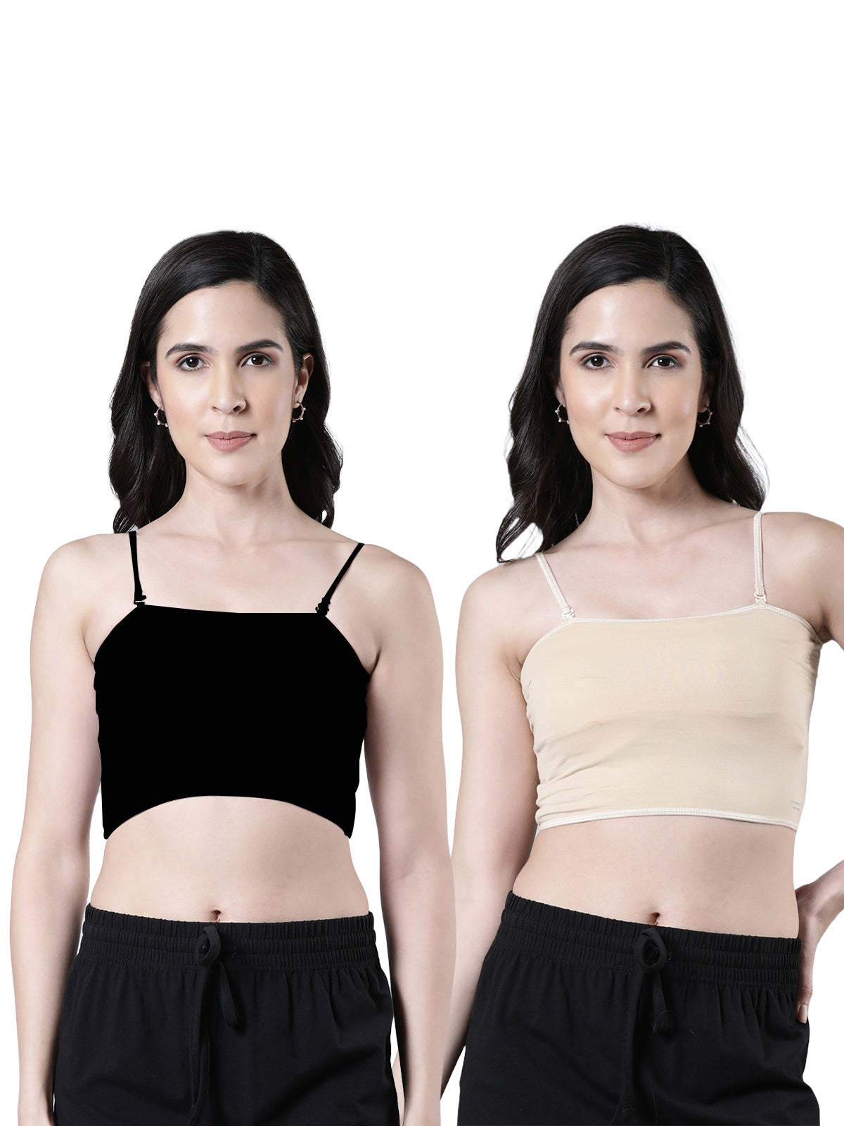 Women's Cotton Crop Top with Adjustable Straps and Detachable Pads Black and Beige Pack of 2
