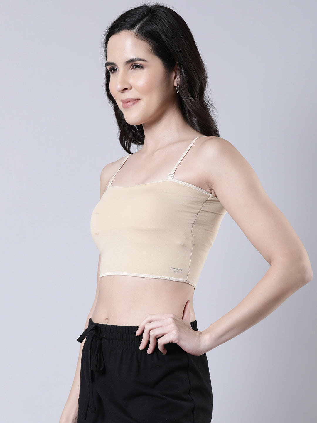 Femmora's Crop Top for Women is an essential piece that perfectly combines comfort and design. Its feminine touch is added by the form-fitting shape and delicate spaghetti straps, which are crafted from cotton soft fabric. The adjustable straps and detachable cookie pad add to its aesthetics. It easily goes from casual to classy, offering adaptability for every occasion. It is available in a variety of shades and classic designs. Elevate your wardrobe fashion with this timeless piece.