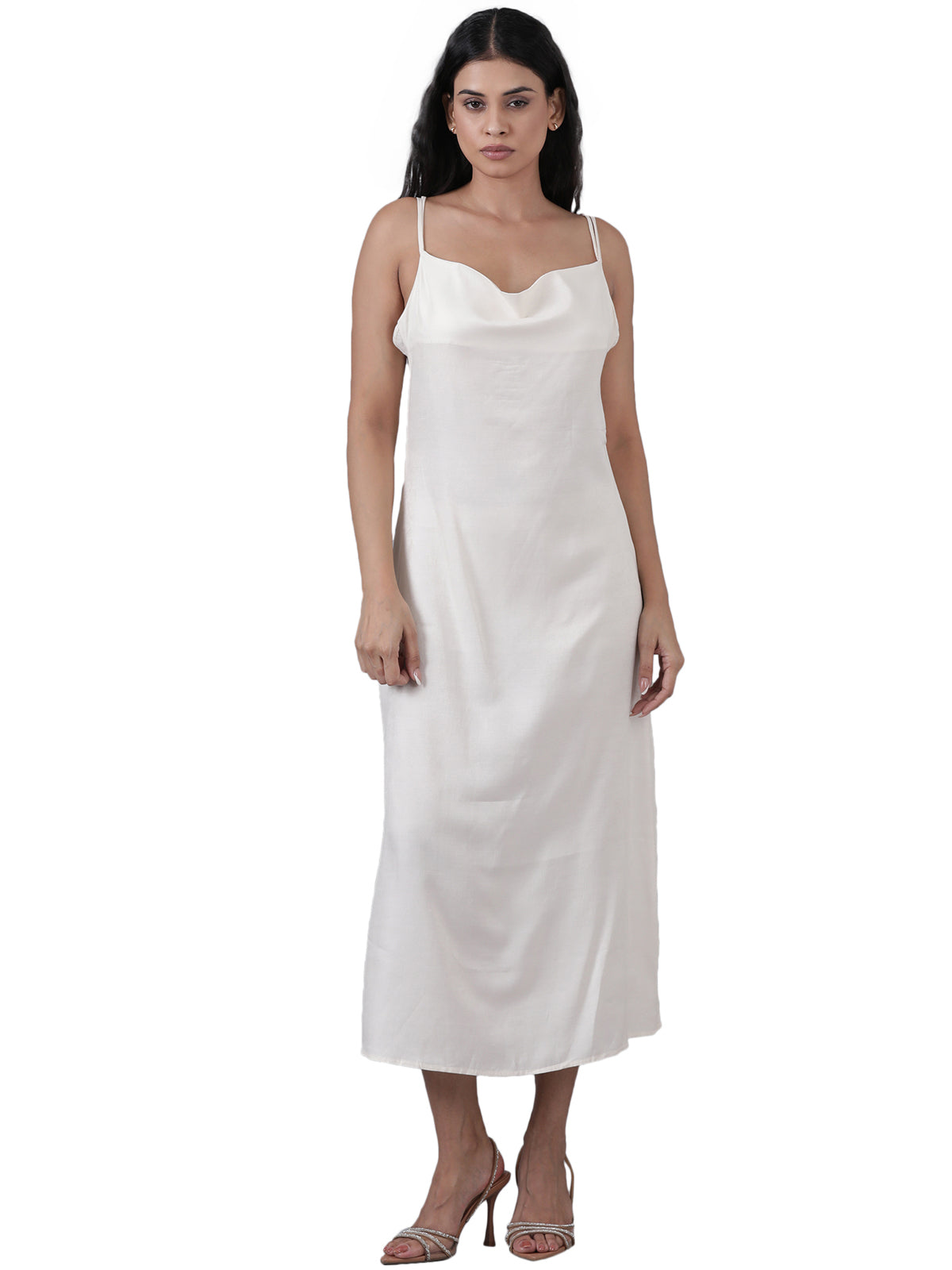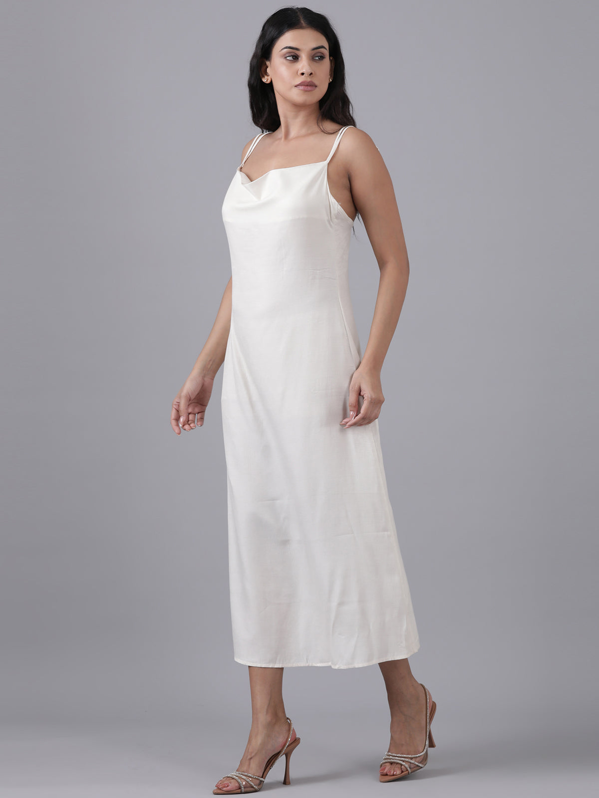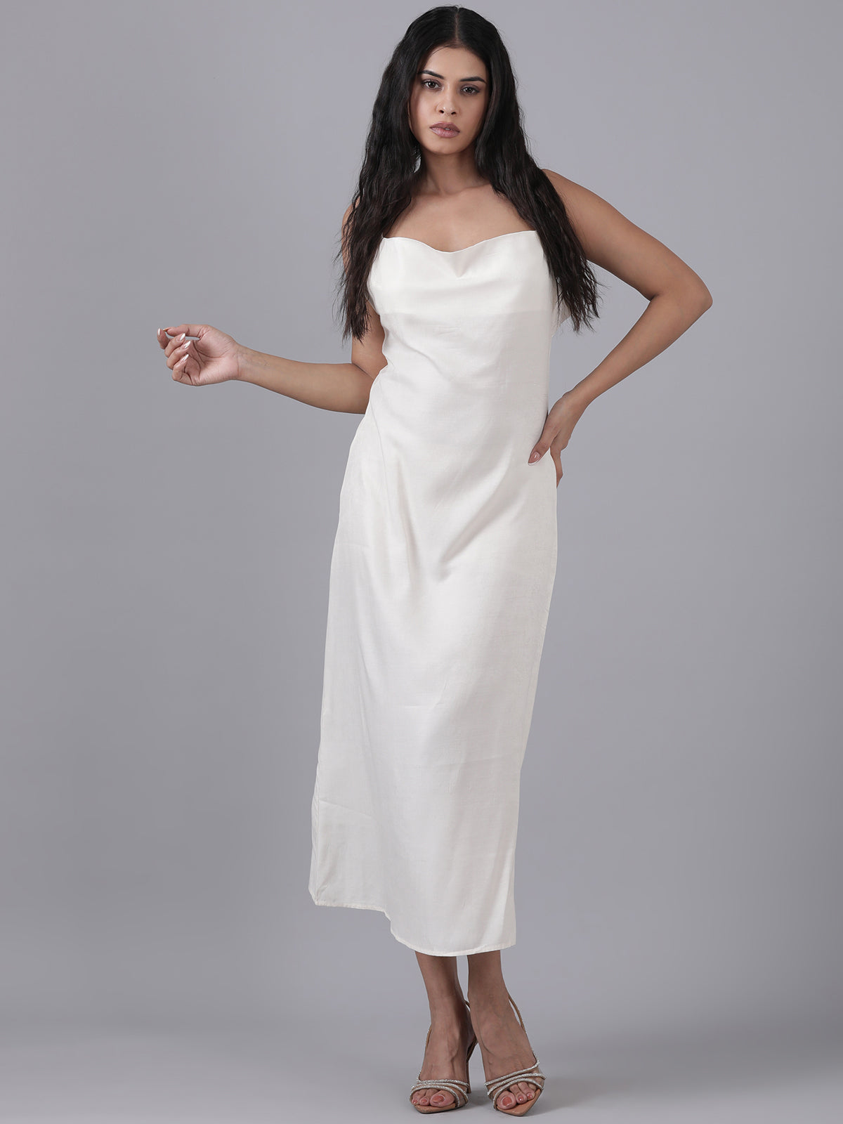 Femmora Women’s Satin Viscose Maxi Dress | Long Bodycon Evening Dress with Cowl Neck & Strappy Cross-Back | Elegant Slim Fit Party Wear Outfit | White |Pack of 1