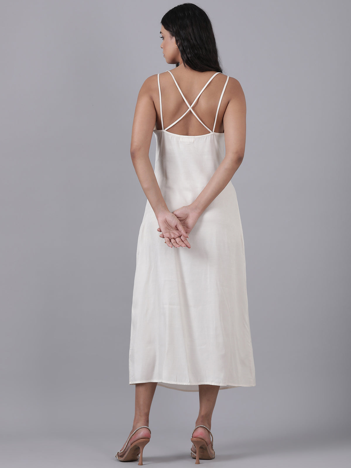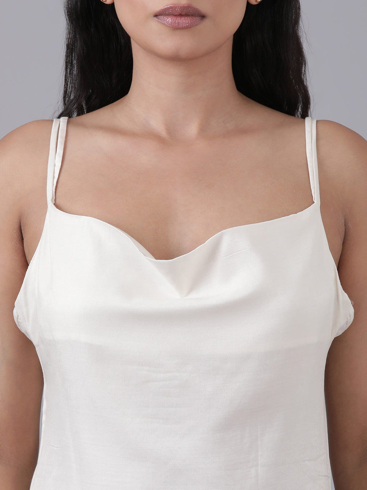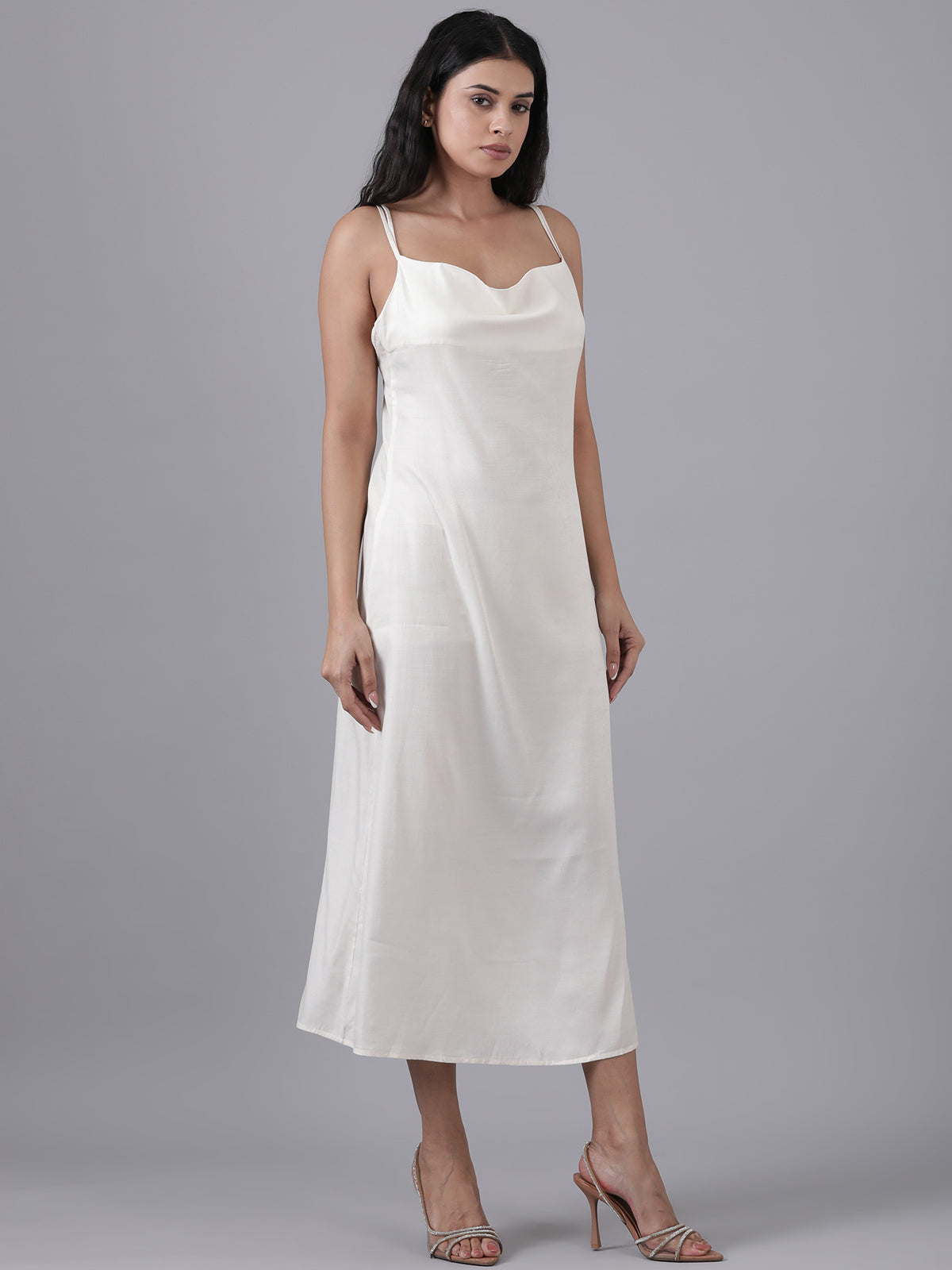Femmora Women’s Satin Viscose Maxi Dress | Long Bodycon Evening Dress with Cowl Neck & Strappy Cross-Back | Elegant Slim Fit Party Wear Outfit | White |Pack of 1