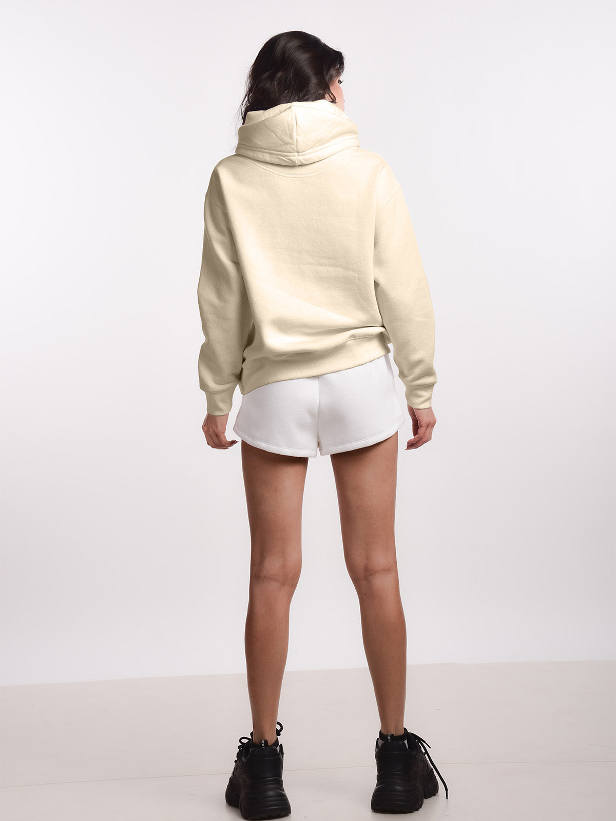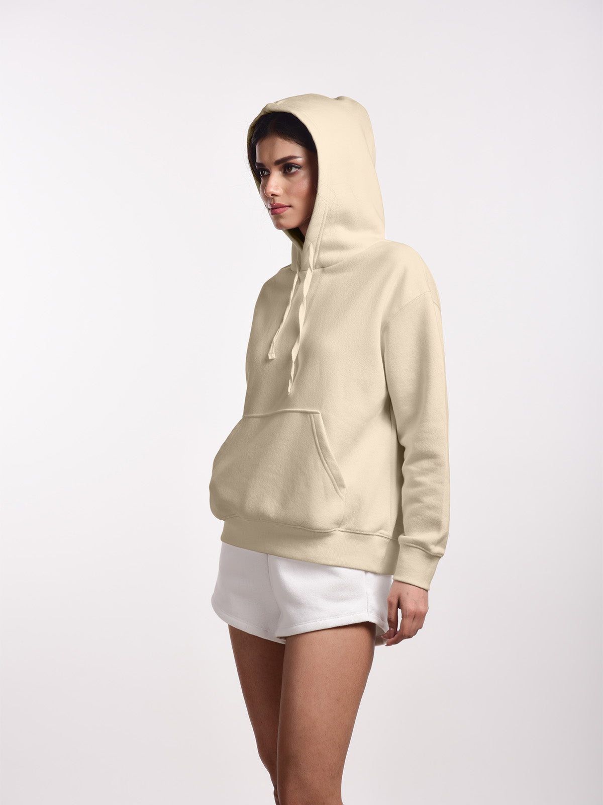 Femmora Premium 100% Cotton Fleece Long Sleeve Oversized Hoodie for Women | Loose Fit Knitted Pullover with Kangaroo Pocket | Dropped Shoulder – Beige (Pack of 1)