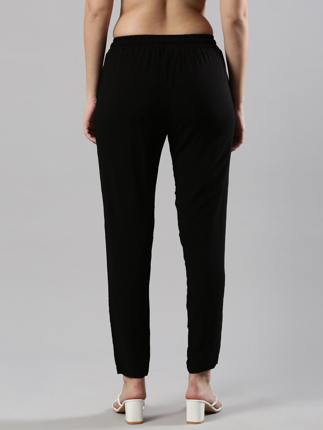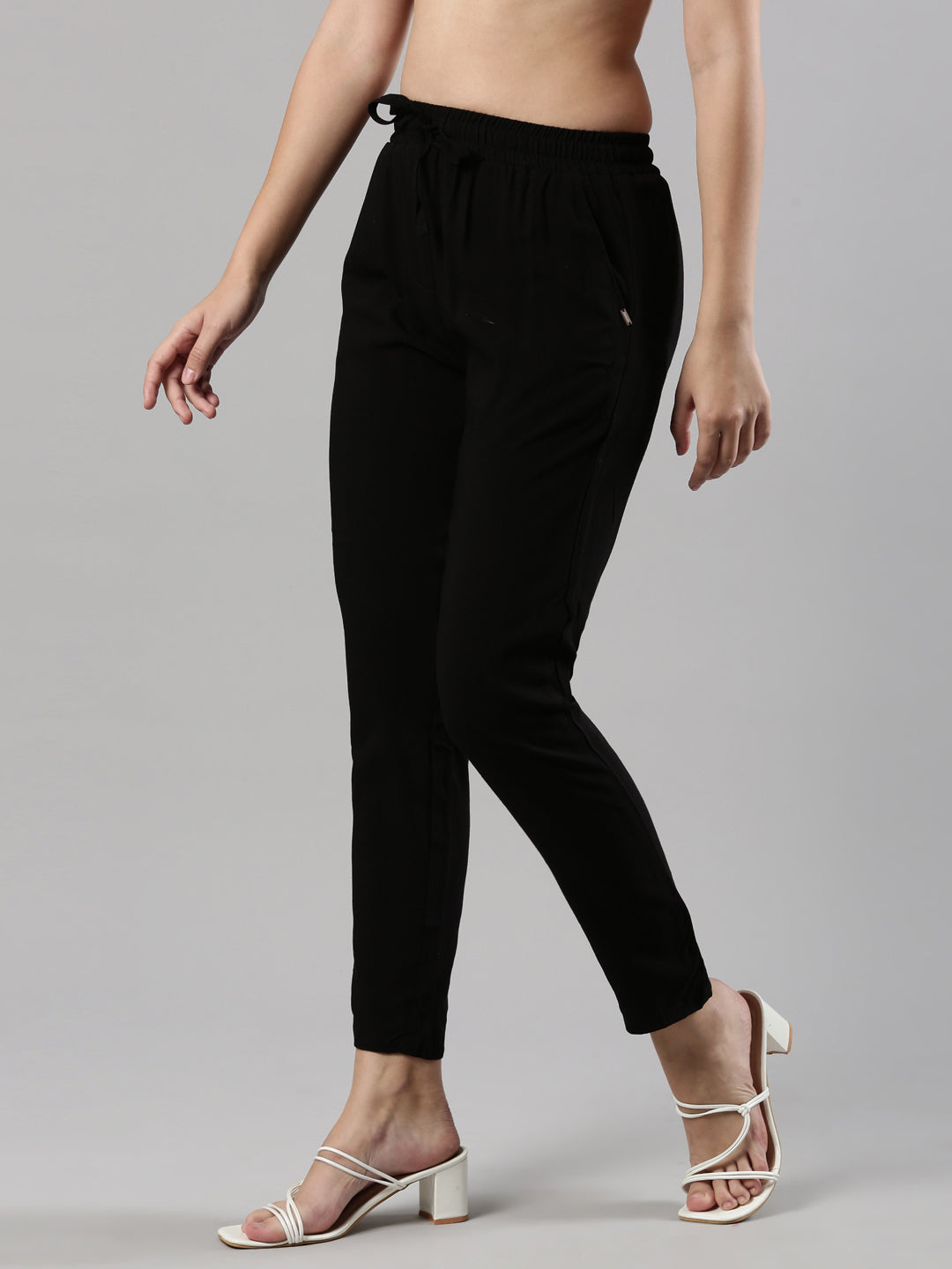 Relaxed Fit Pant | Soft Rayon, Drawstring Waistband, 2 Pockets Jet Black