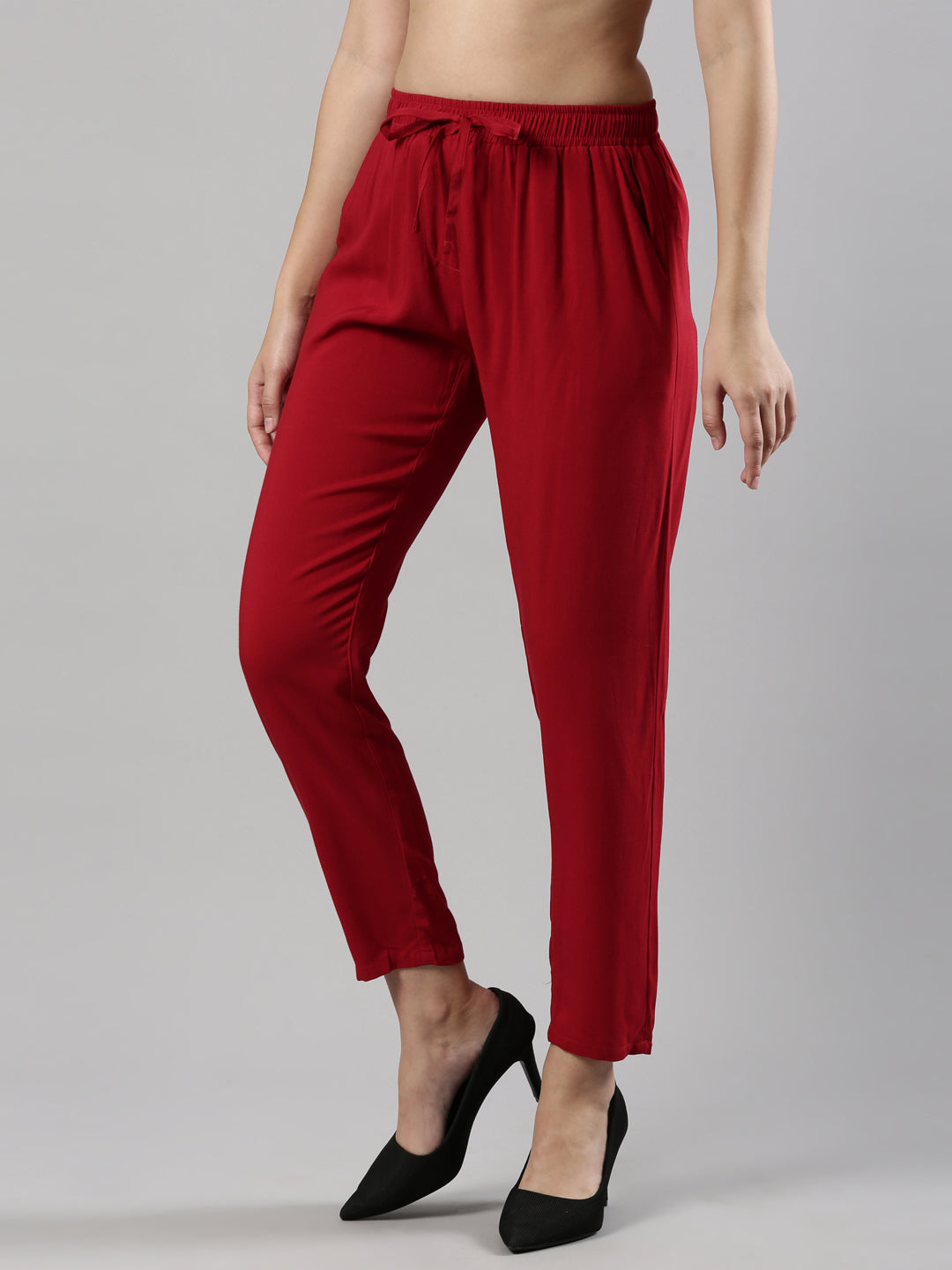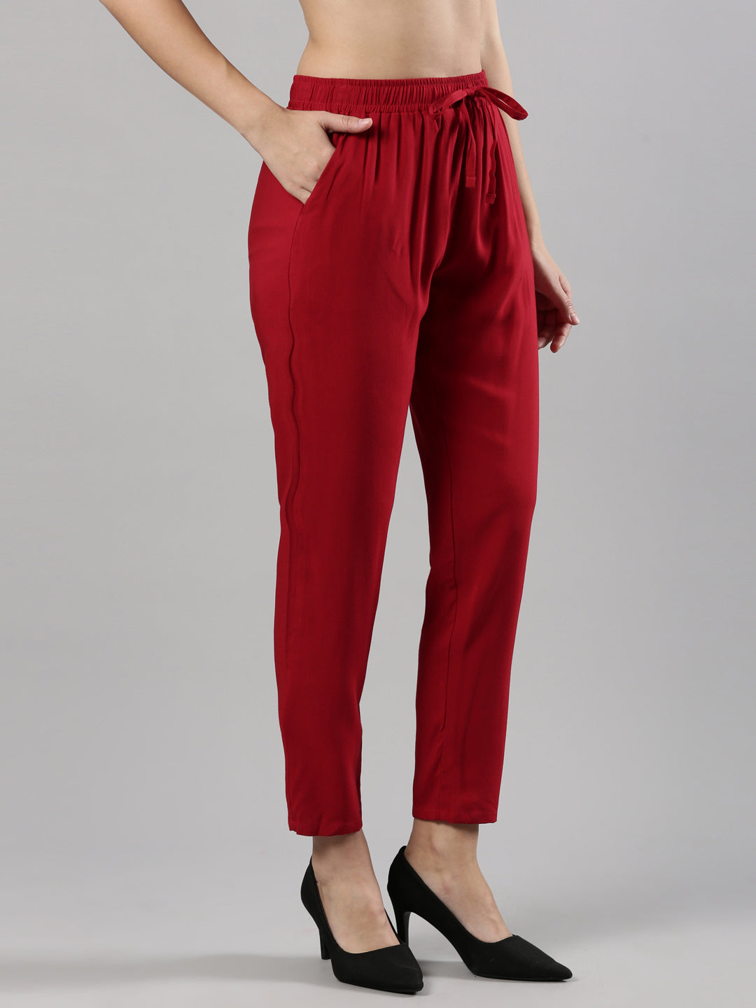 Relaxed Fit Pant | Soft Rayon, Drawstring Waistband, 2 Pockets Maroon