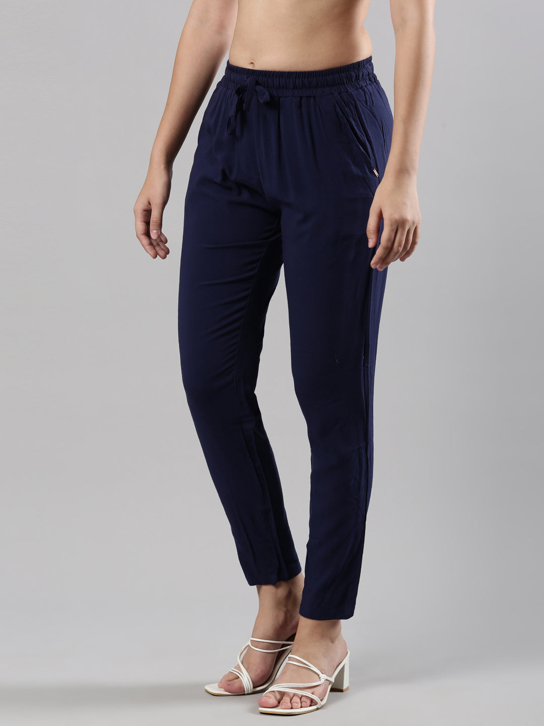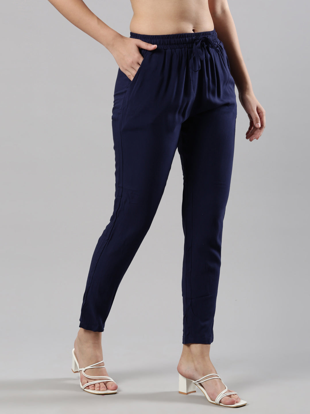 Relaxed Fit Pant | Soft Rayon, Drawstring Waistband, 2 Pockets Navy Blue