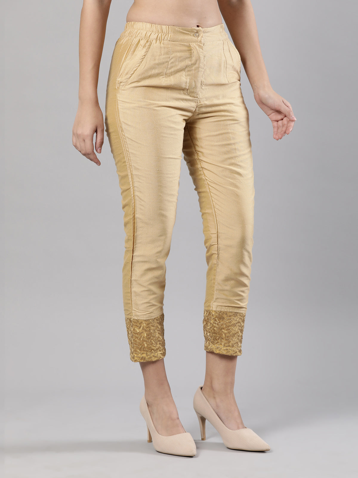 Experience the perfect fusion of comfort and elegance with Femmora's Comfortable Fit Fancy Hem Pant for Women. Crafted to provide enduring comfort, these pants feature a soft and breathable construction, meticulously tailored from a luxurious blend of silk and cotton. Boasting practicality and refinement, they are adorned with two functional pockets and a secure button zip closure.Perfect for both formal affairs and casual outings, these pants effortlessly blends versatility with sophistication. The addition of fancy hem detailing adds a touch of flair and charm to the timeless design, ensuring you exude poise and confidence in every setting.From tailored tops for a polished ensemble to casual tees for everyday chic, Femmora's Fancy Hem Pants are an indispensable wardrobe essential, promising a seamless blend of comfort and style for the modern woman.