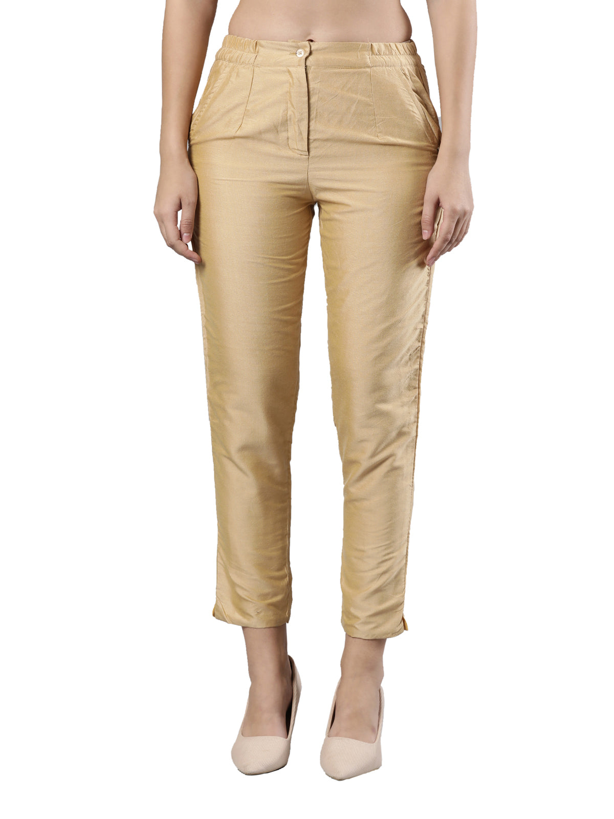 Experience the perfect fusion of comfort and elegance with Femmora's Comfortable Fit Fancy Hem Pant for Women. Crafted to provide enduring comfort, these pants feature a soft and breathable construction, meticulously tailored from a luxurious blend of silk and cotton. Boasting practicality and refinement, they are adorned with two functional pockets and a secure button zip closure.Perfect for both formal affairs and casual outings, these pants effortlessly blends versatility with sophistication. The addition of fancy hem detailing adds a touch of flair and charm to the timeless design, ensuring you exude poise and confidence in every setting.From tailored tops for a polished ensemble to casual tees for everyday chic, Femmora's Fancy Hem Pants are an indispensable wardrobe essential, promising a seamless blend of comfort and style for the modern woman.