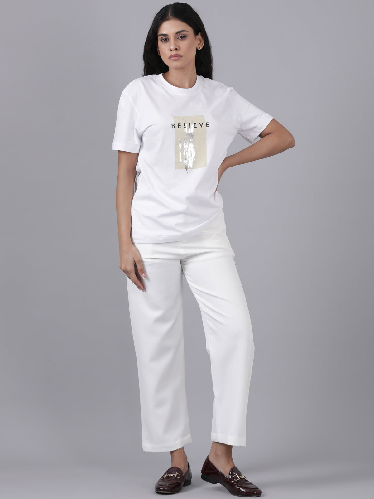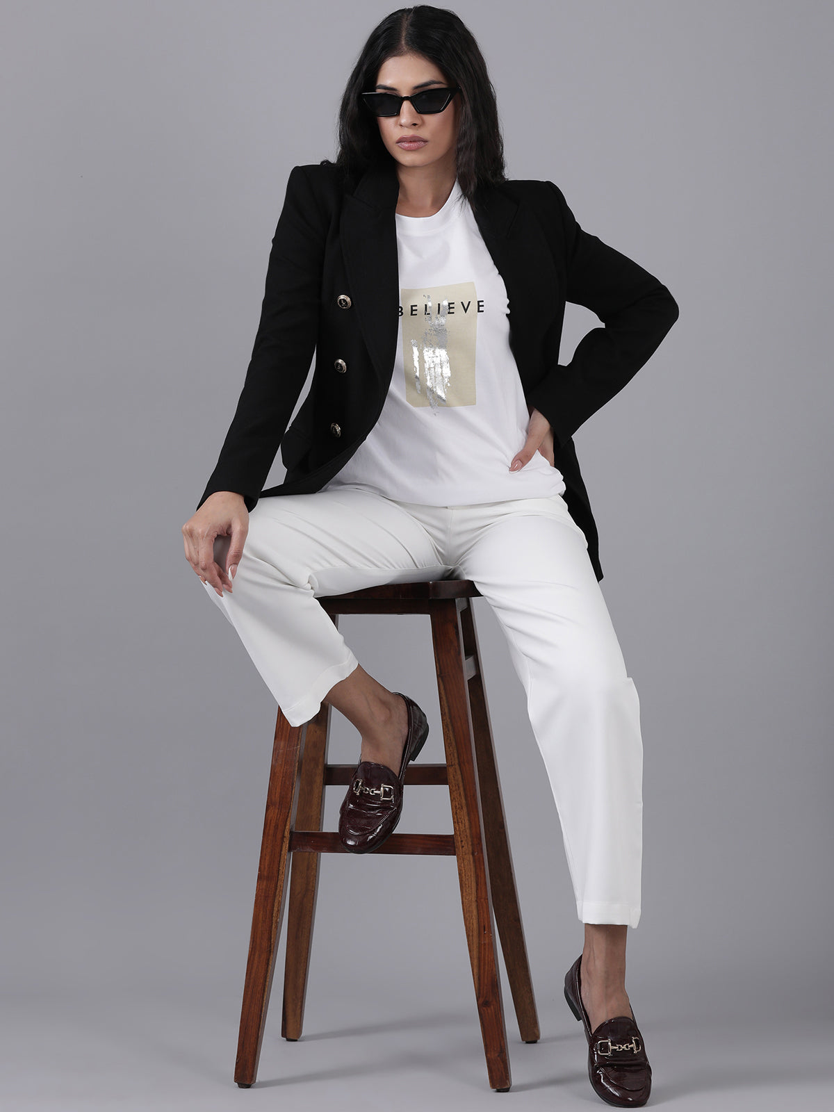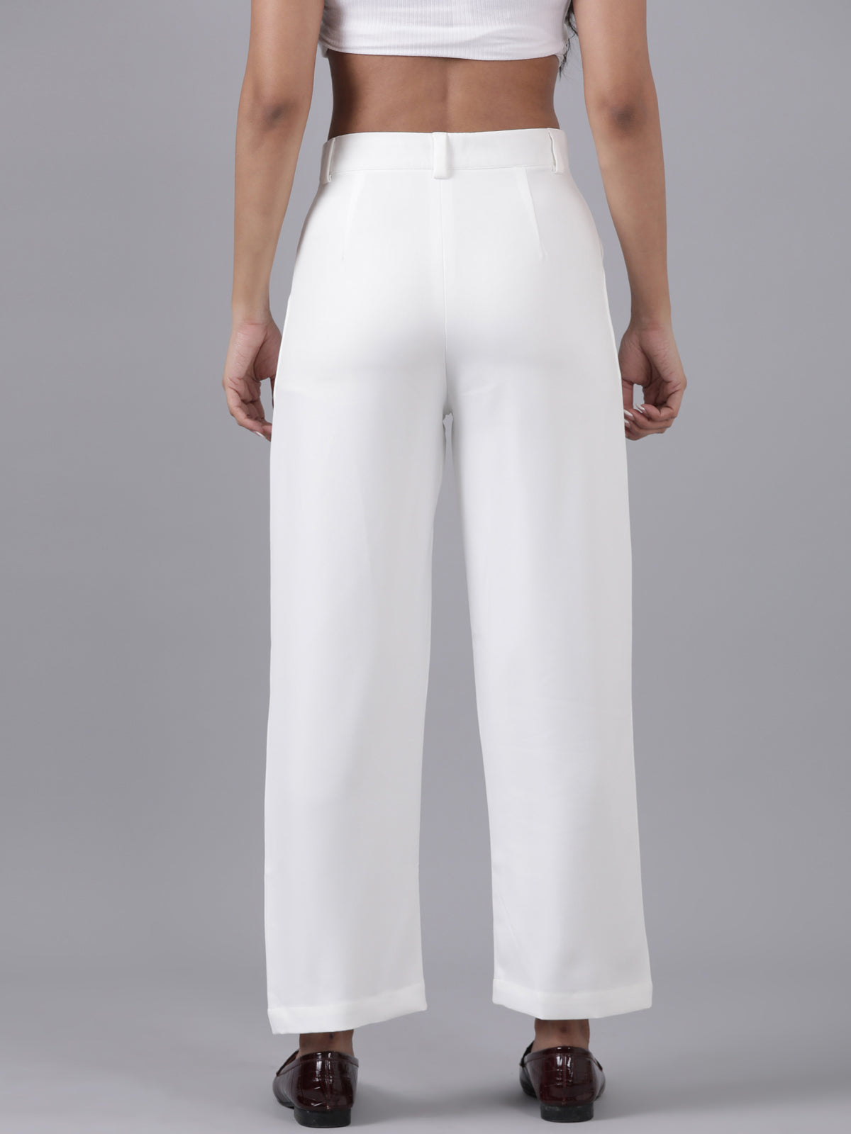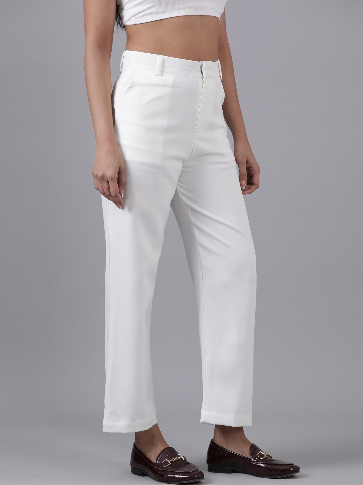 Femmora Women’s High-Rise Straight Fit Trousers with 2 Side Pockets | Stretch Formal Bottoms in Polyester Blend | Lightweight Workwear Pants |White|Pack of 1