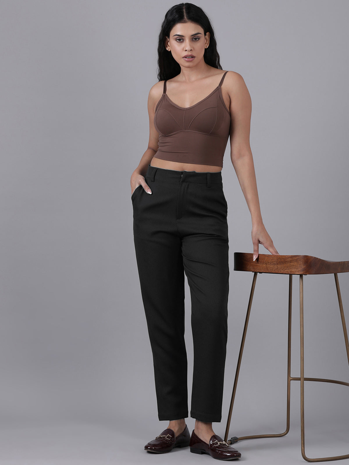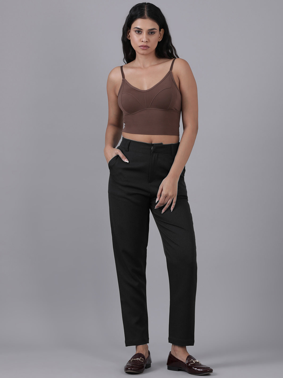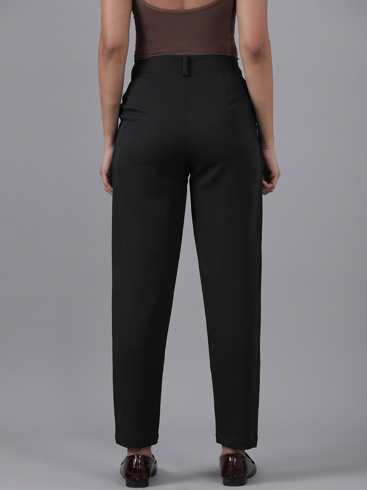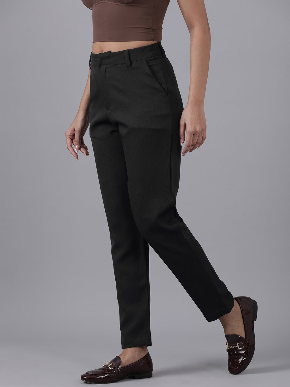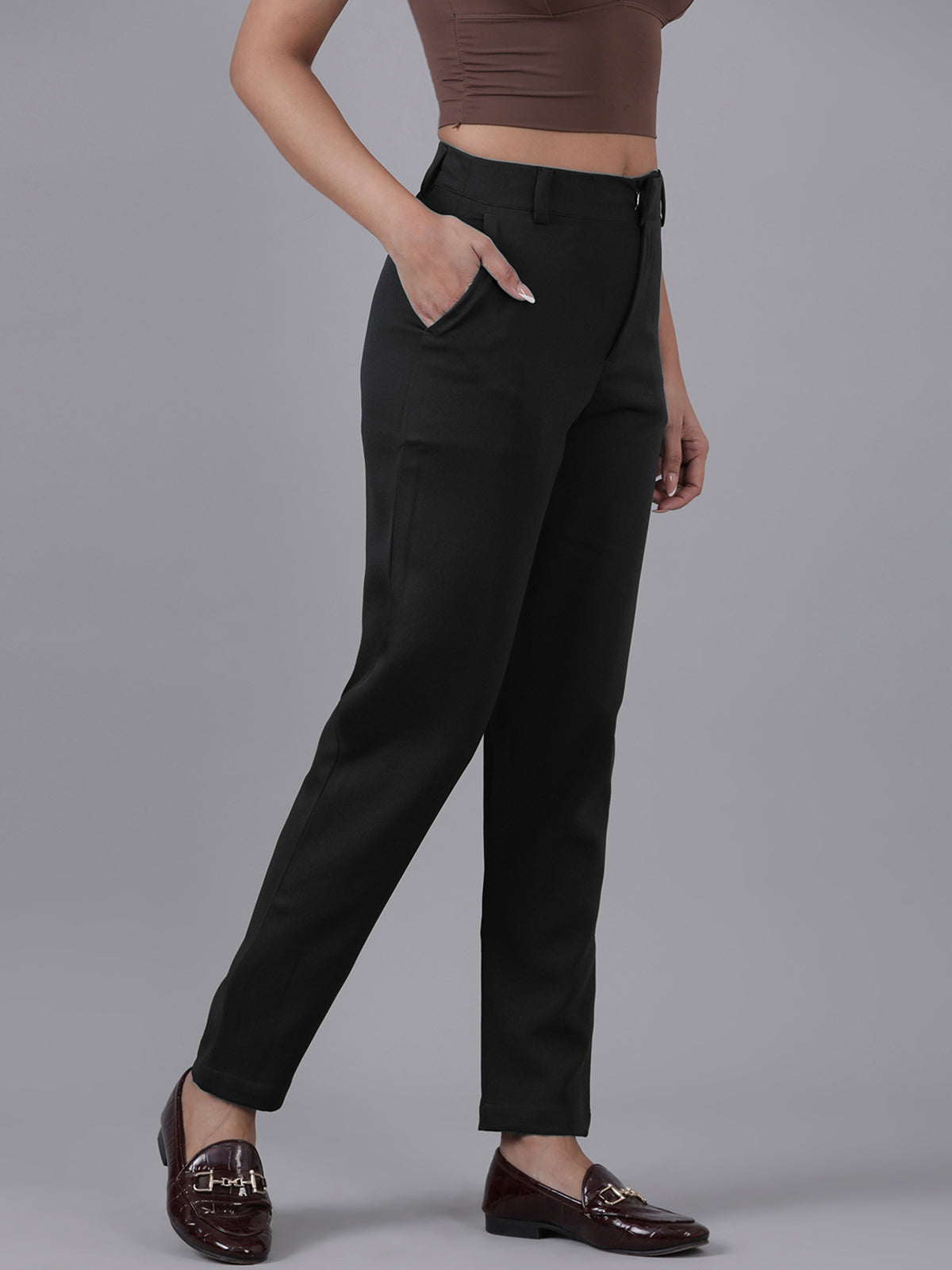 Femmora Women’s High-Rise Narrow Fit Trousers with 2 Side Pockets | Slim Formal Work Pants for Office & Business Wear |Premium Polyester Fabric Bottoms |Black|Pack of 1