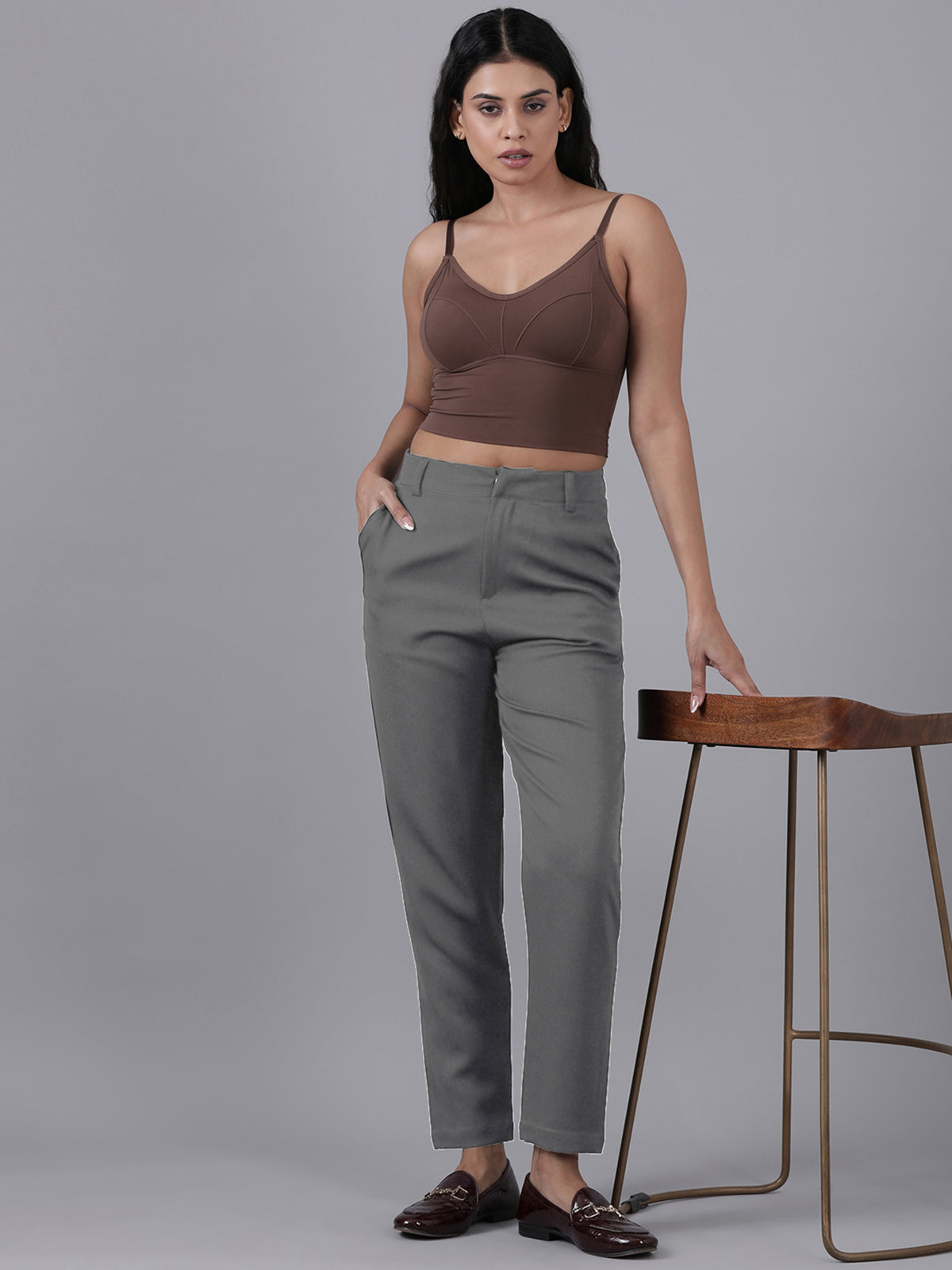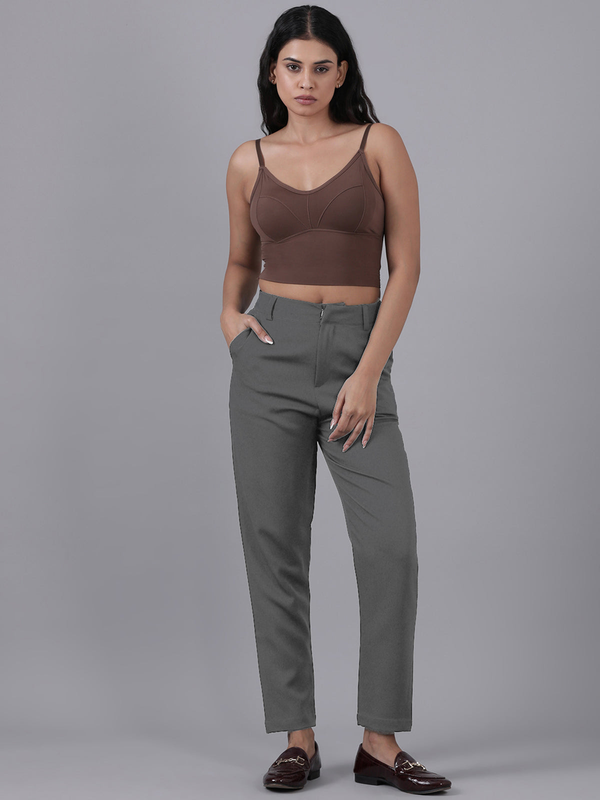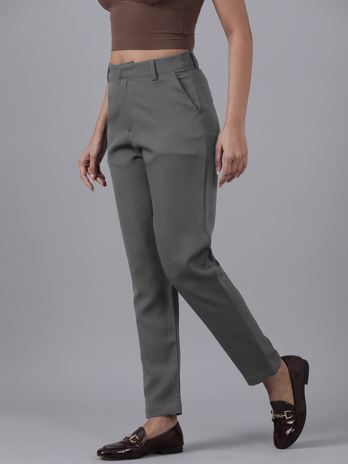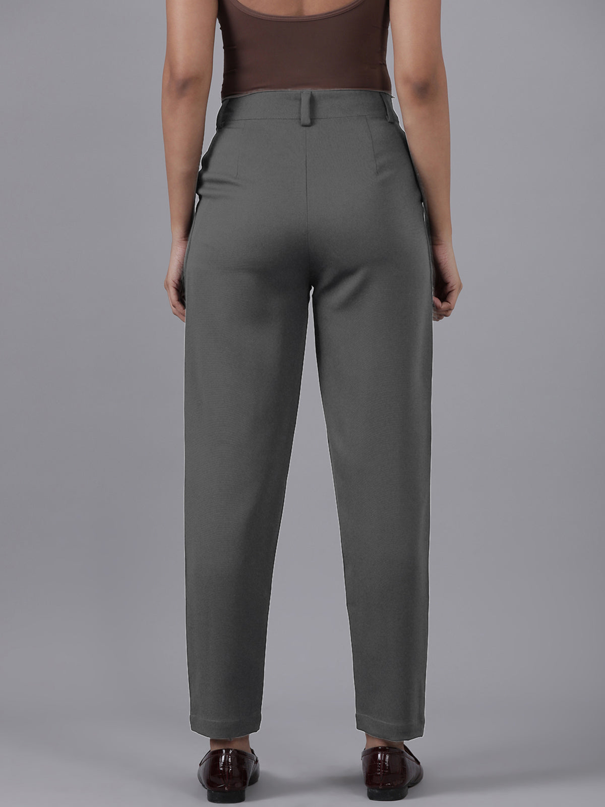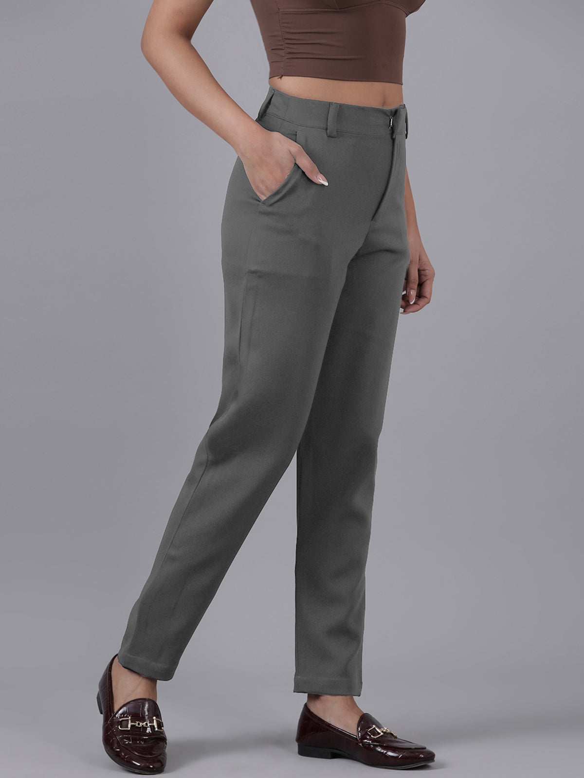 Femmora Women’s High-Rise Narrow Fit Trousers with 2 Side Pockets | Slim Formal Work Pants for Office & Business Wear |Premium Polyester Fabric Bottoms |Deep Grey|Pack of 1