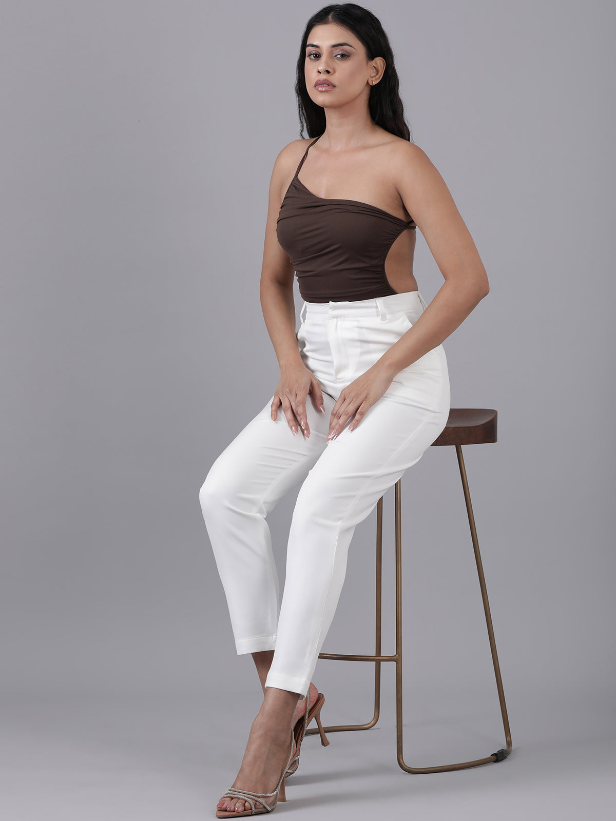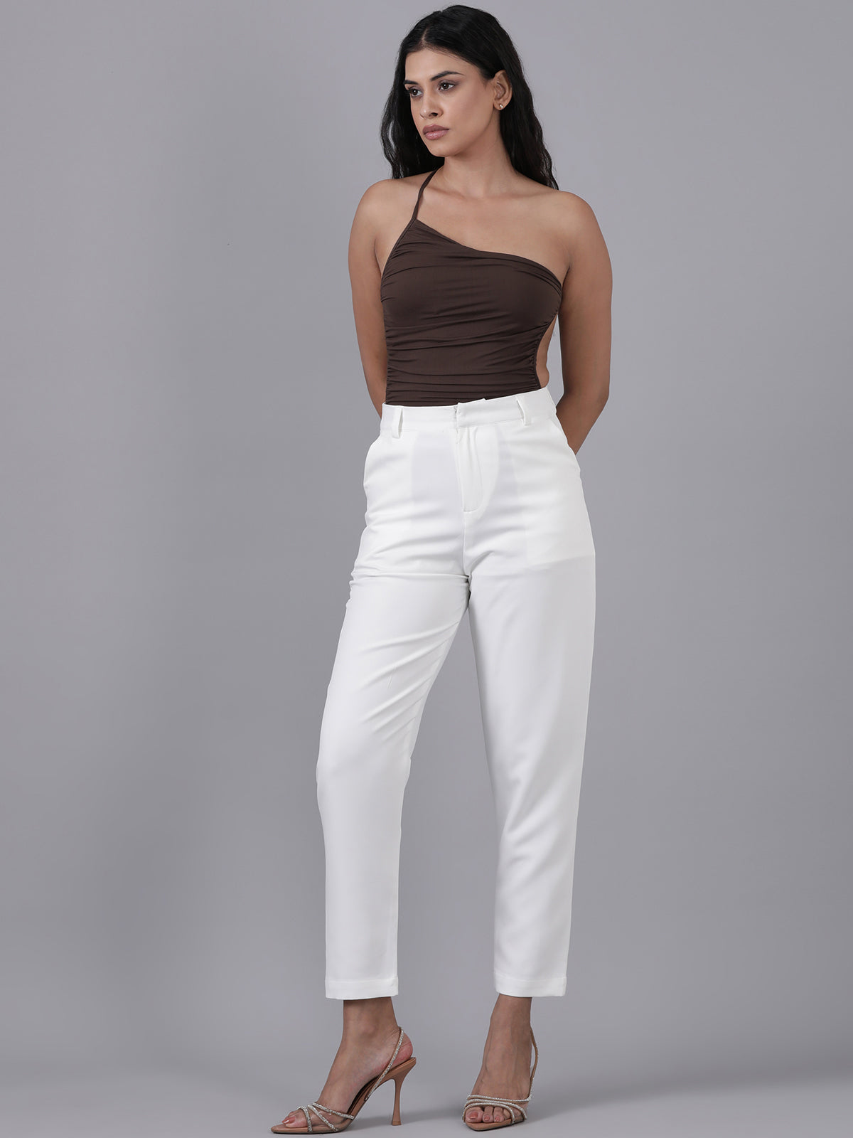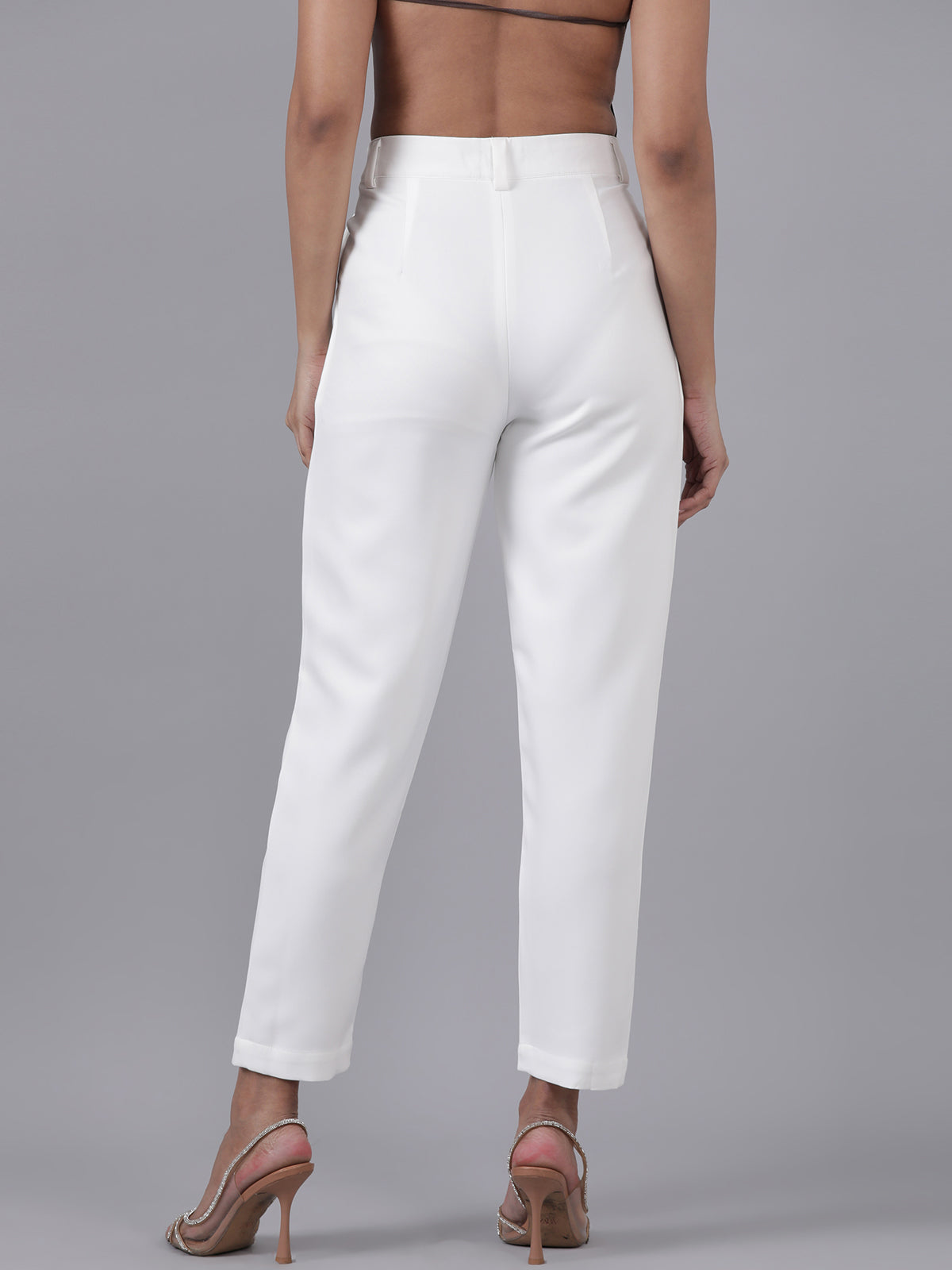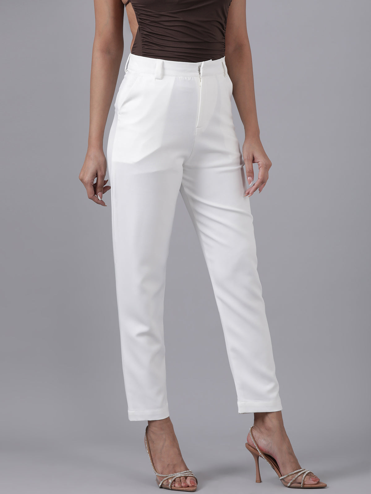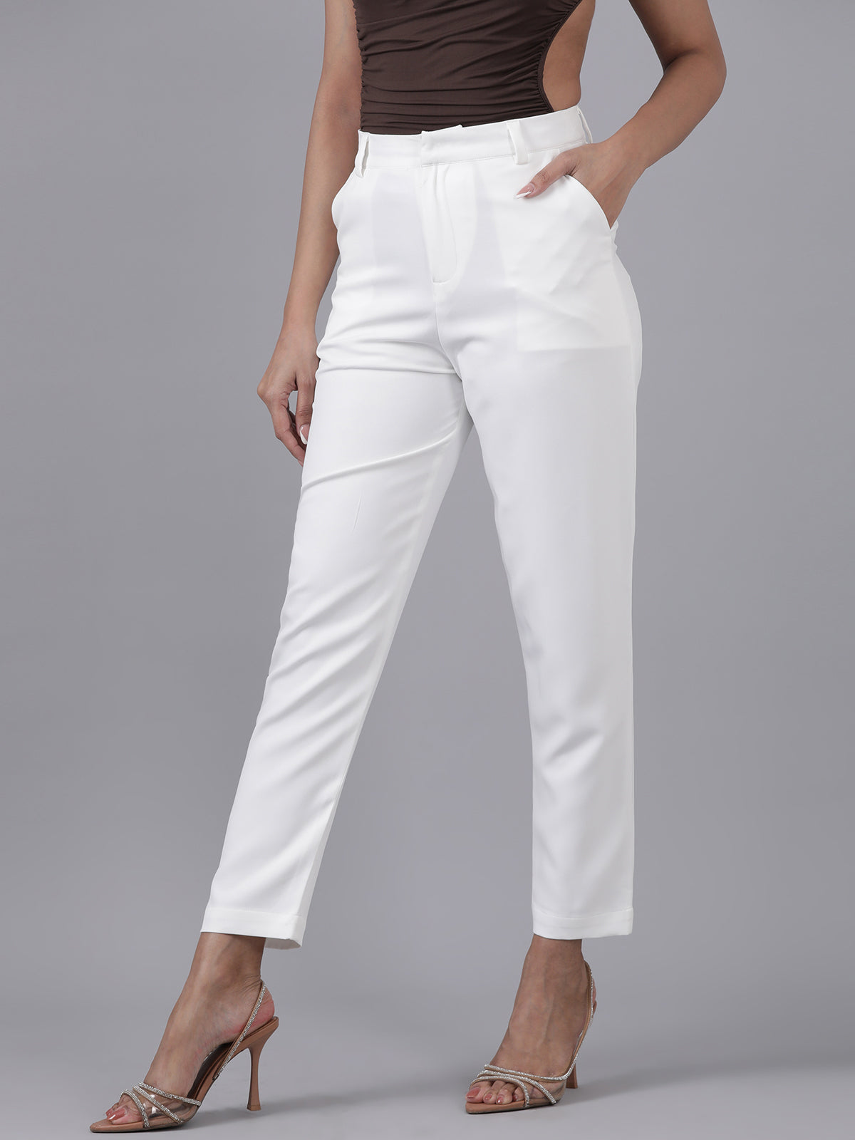 Femmora Women’s High-Rise Narrow Fit Trousers with 2 Side Pockets | Slim Formal Work Pants for Office & Business Wear |Premium Polyester Fabric Bottoms | Off.White |Pack of 1