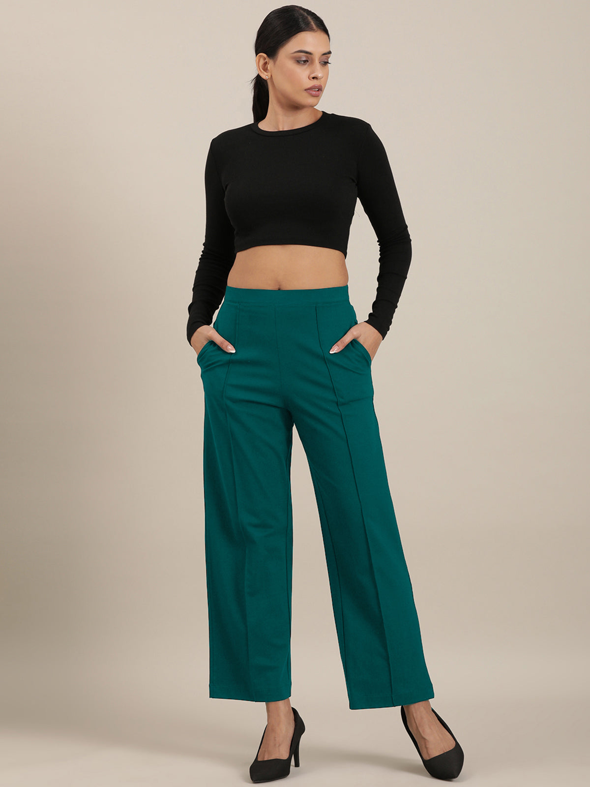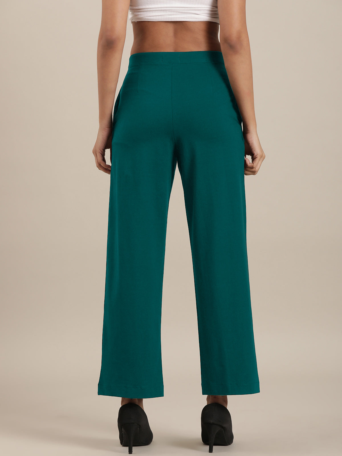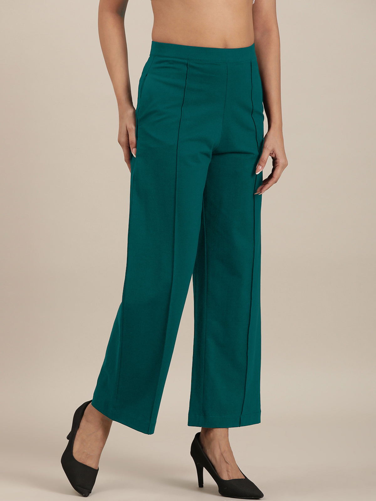 Femmora Women’s High-Rise Relaxed Fit knitted Pants with Pintuck Detail | Full-Length Cotton Straight Trousers | Solid Stretchable Office & Casual Bottoms | Soft Breathable Fabric | Teal |Pack of 1