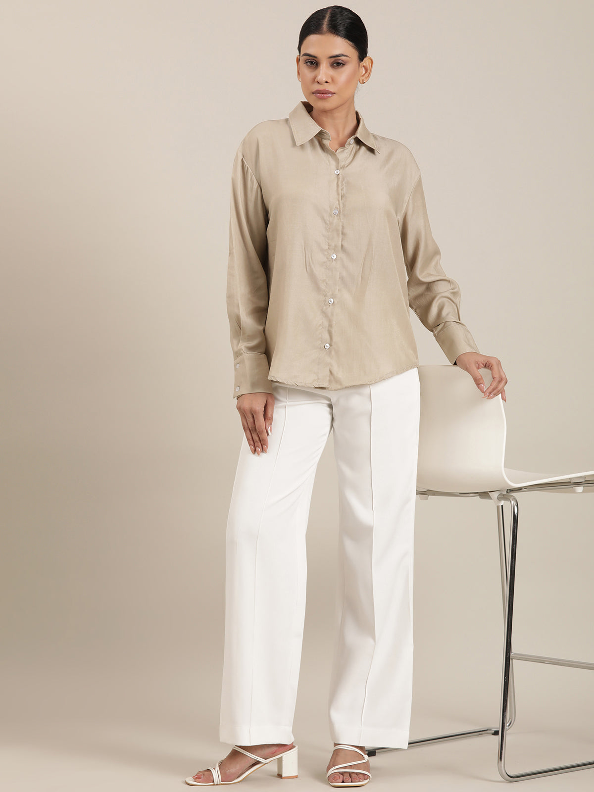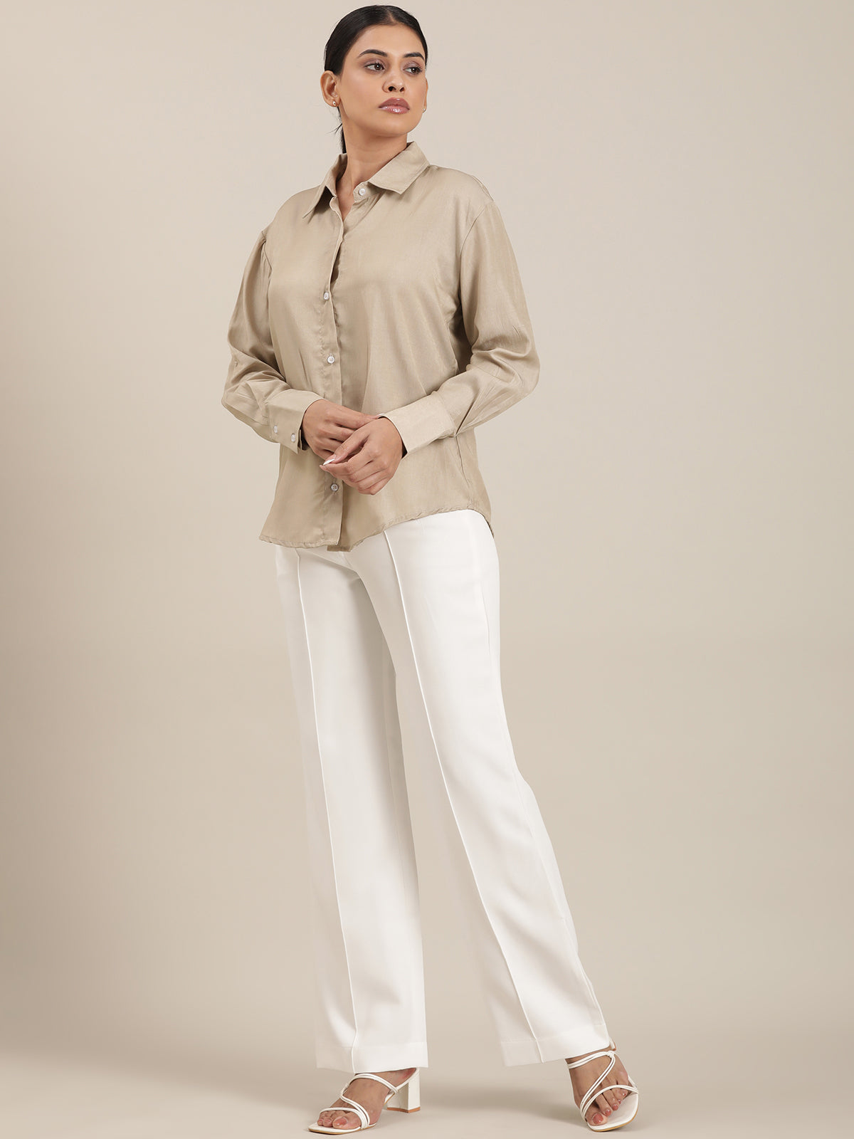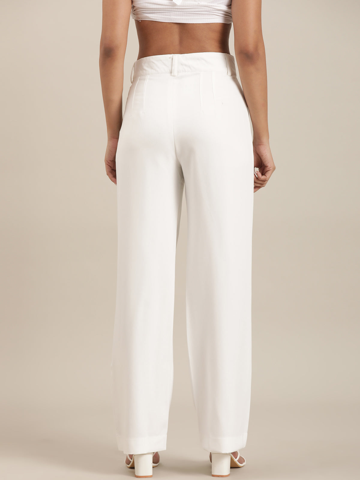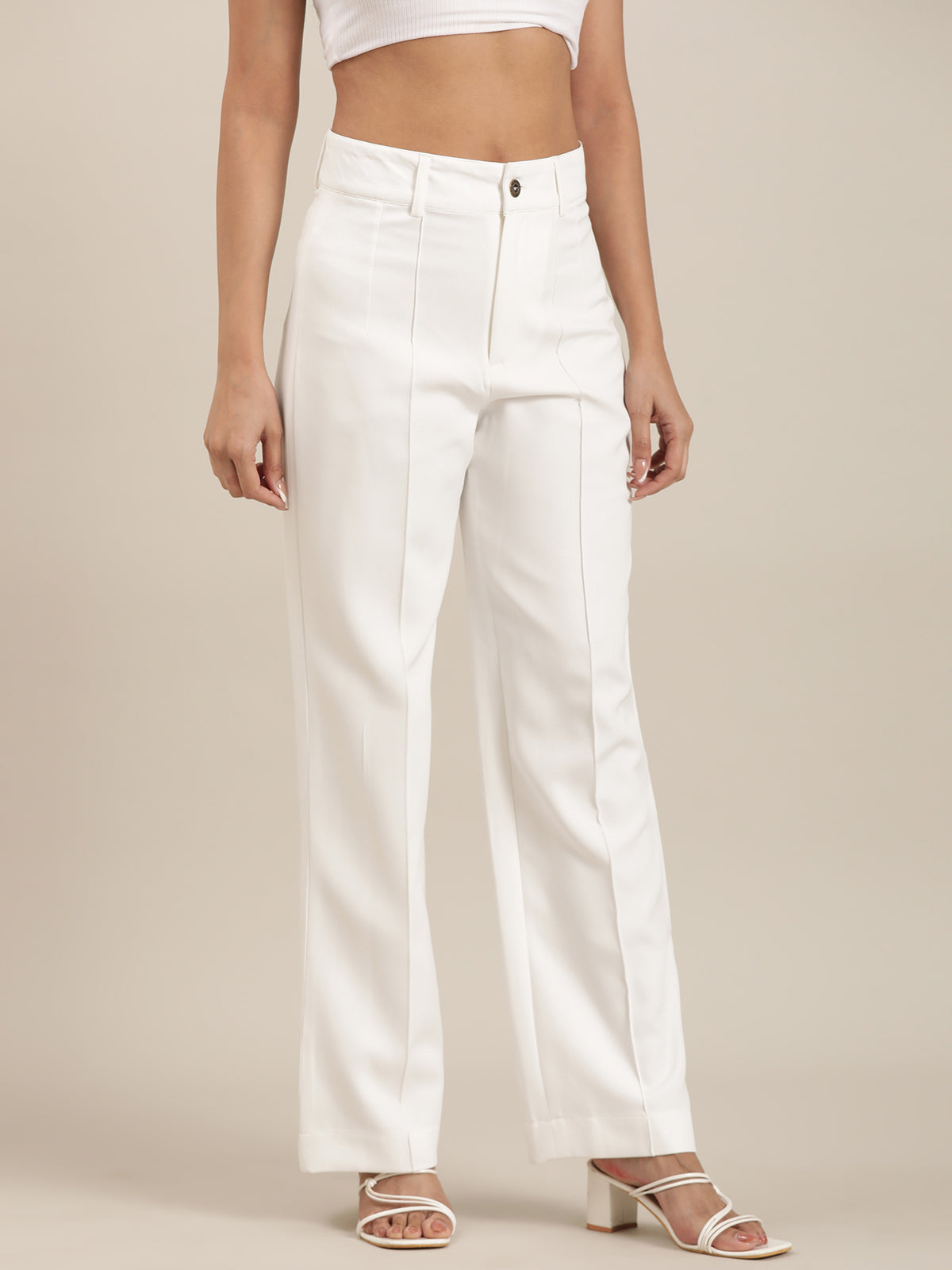 Femmora Women’s High-Rise Straight Fit Trousers with Front Pintuck Detail,Lightweight Workwear Bottoms | White|Pack of 1