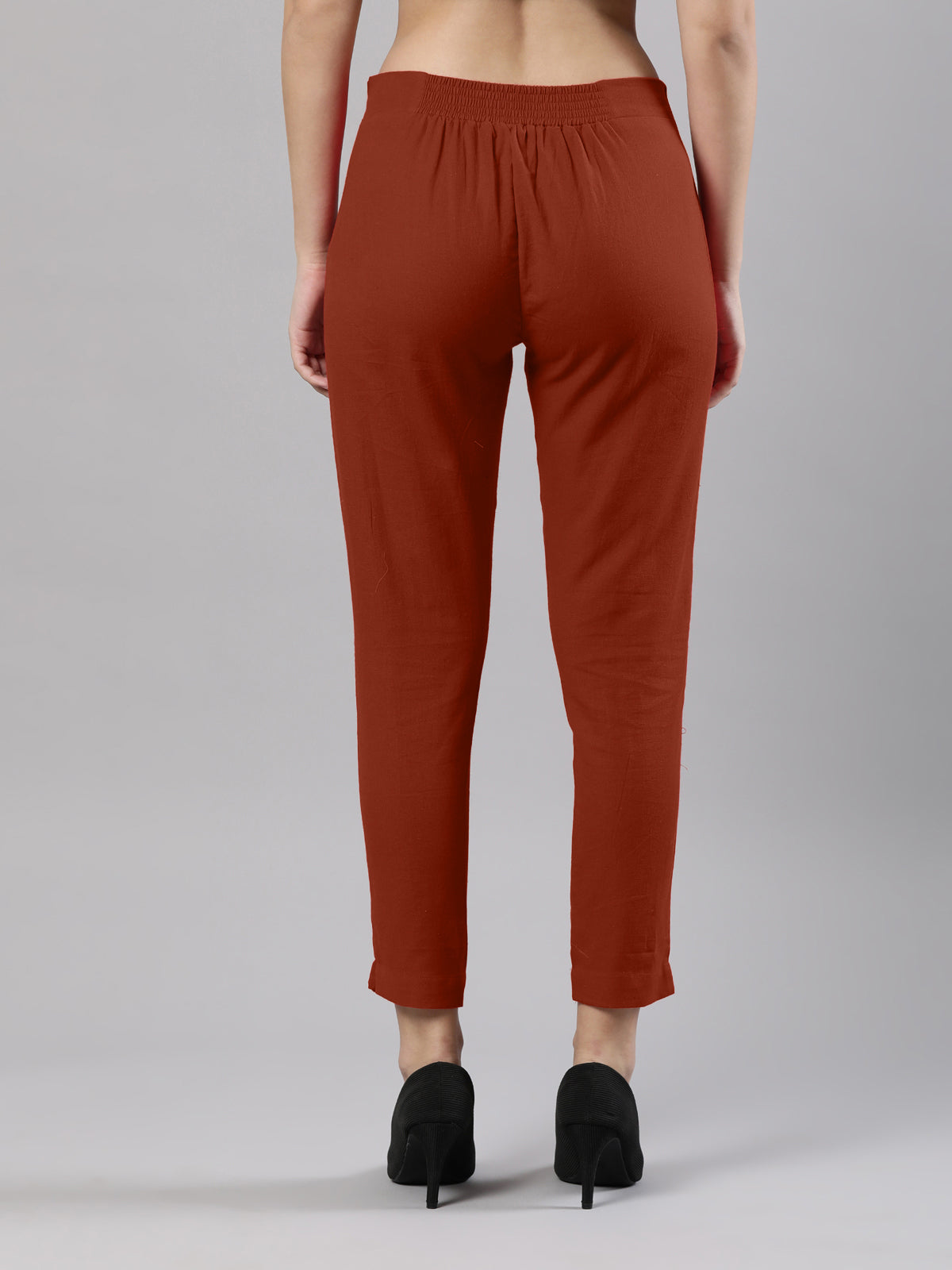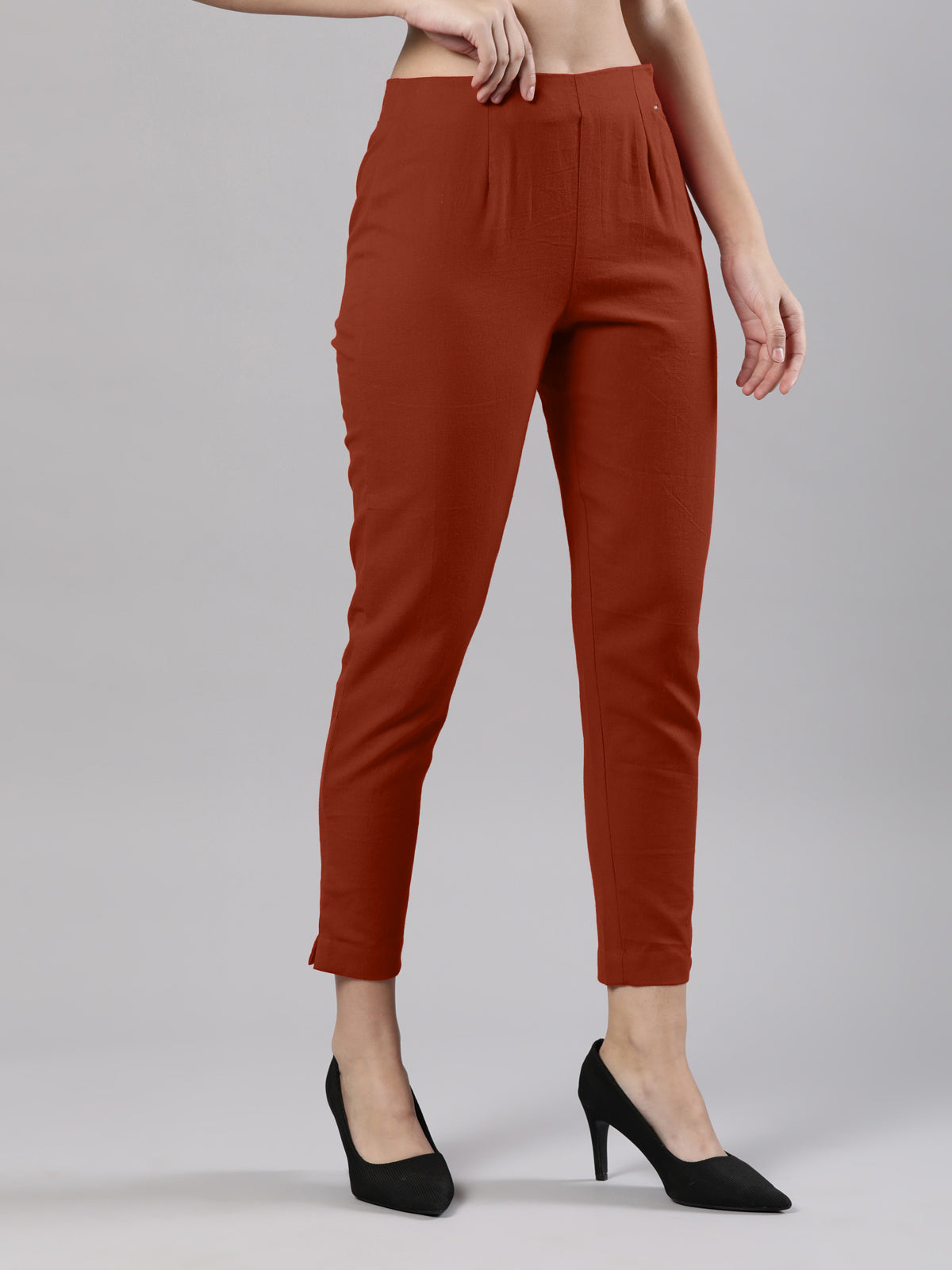 Straight Pant | Breathable Cotton, Side Zip and Button Rust