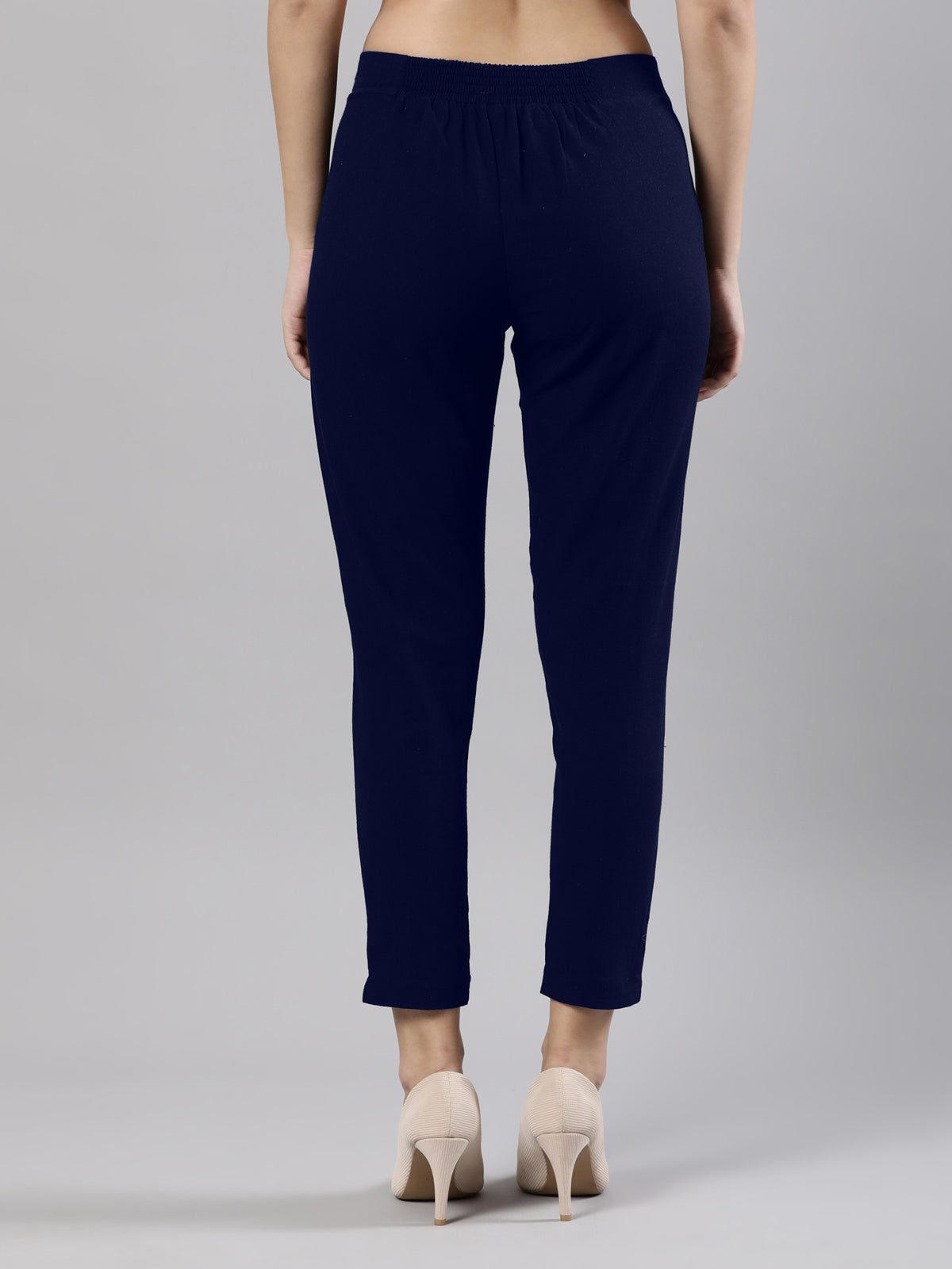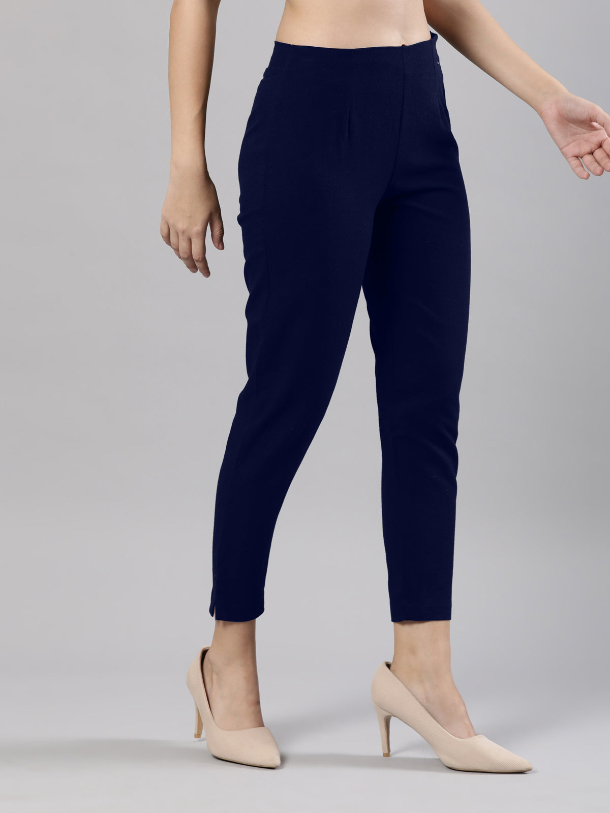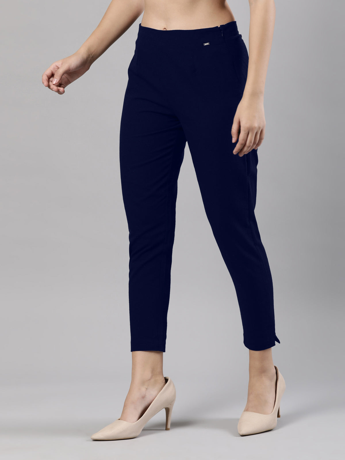 Straight Pant | Breathable Cotton, Side Zip and Button Navy Blue