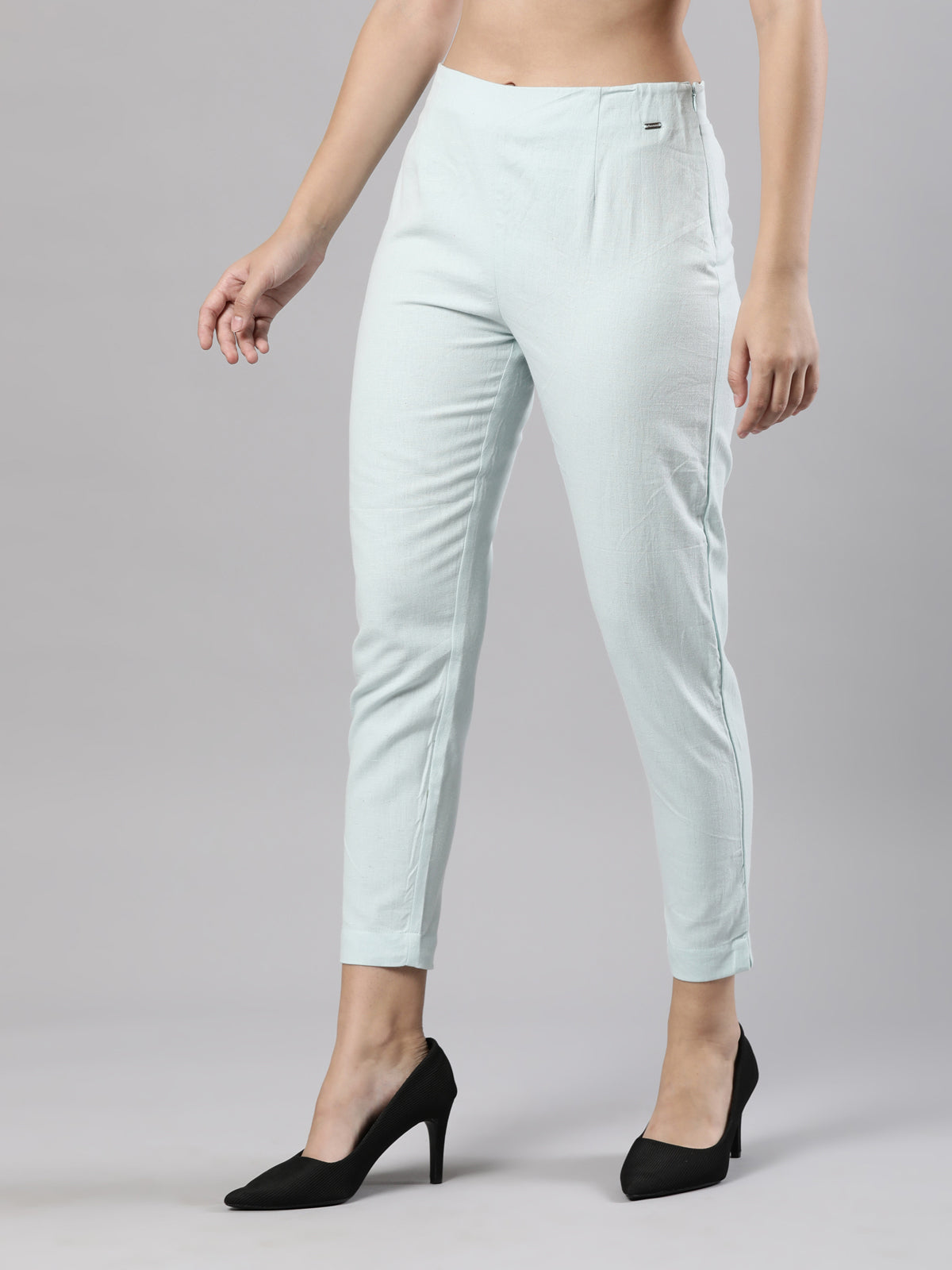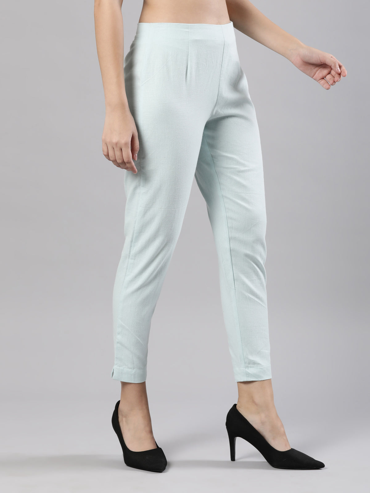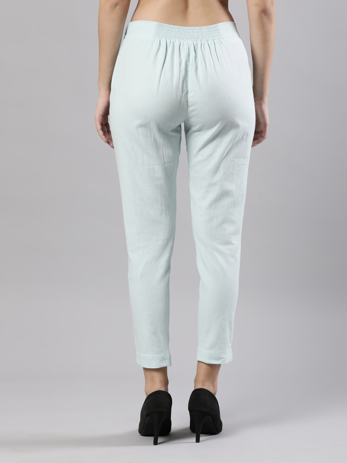 Straight Pant | Breathable Cotton, Side Zip and Button Pastel Blue