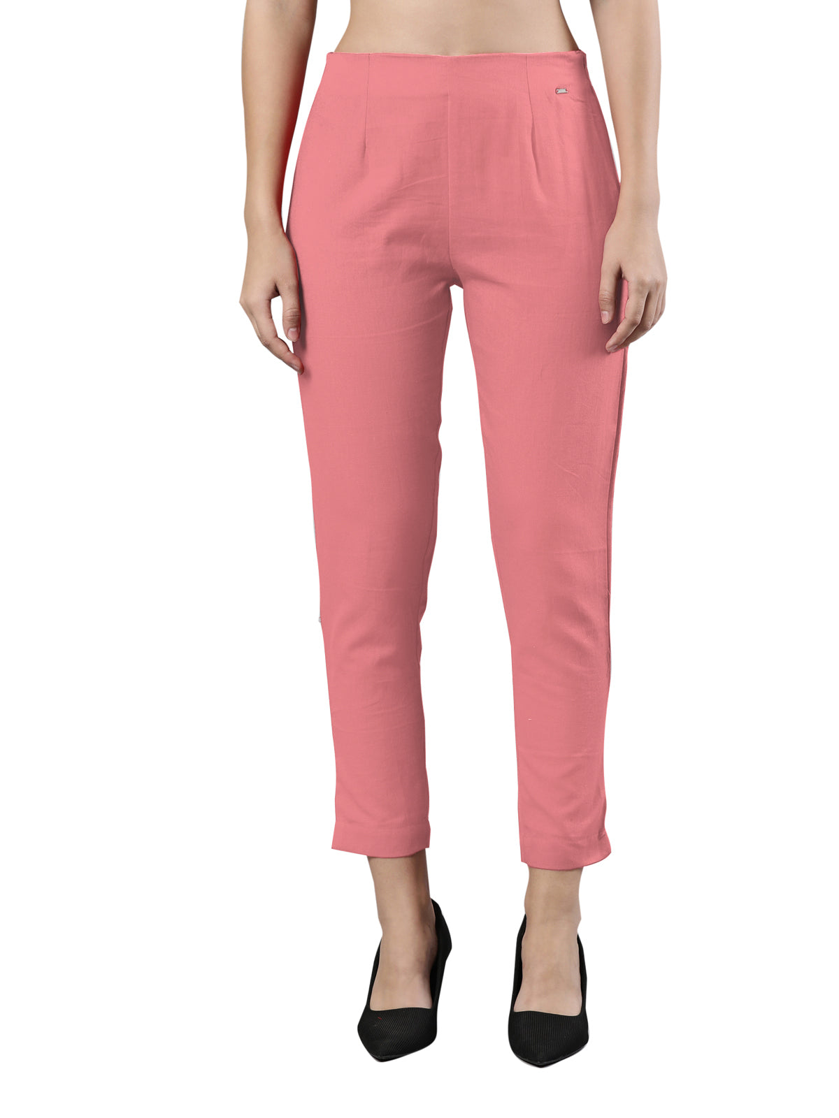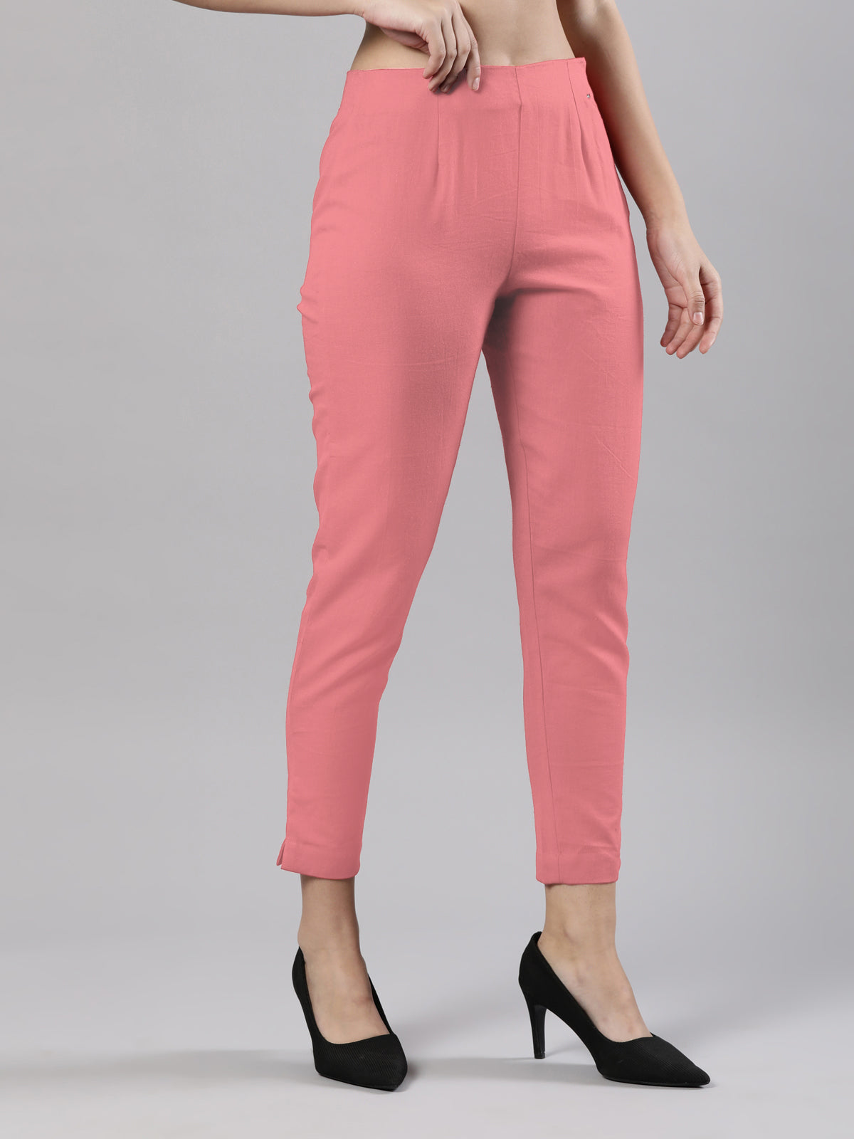 Straight Pant | Breathable Cotton, Side Zip and Button Pink Blush