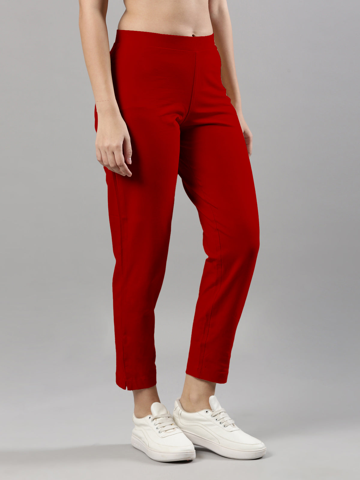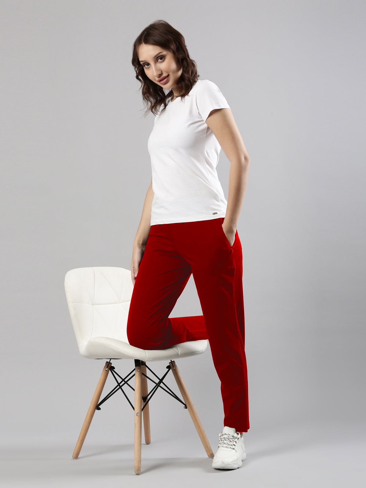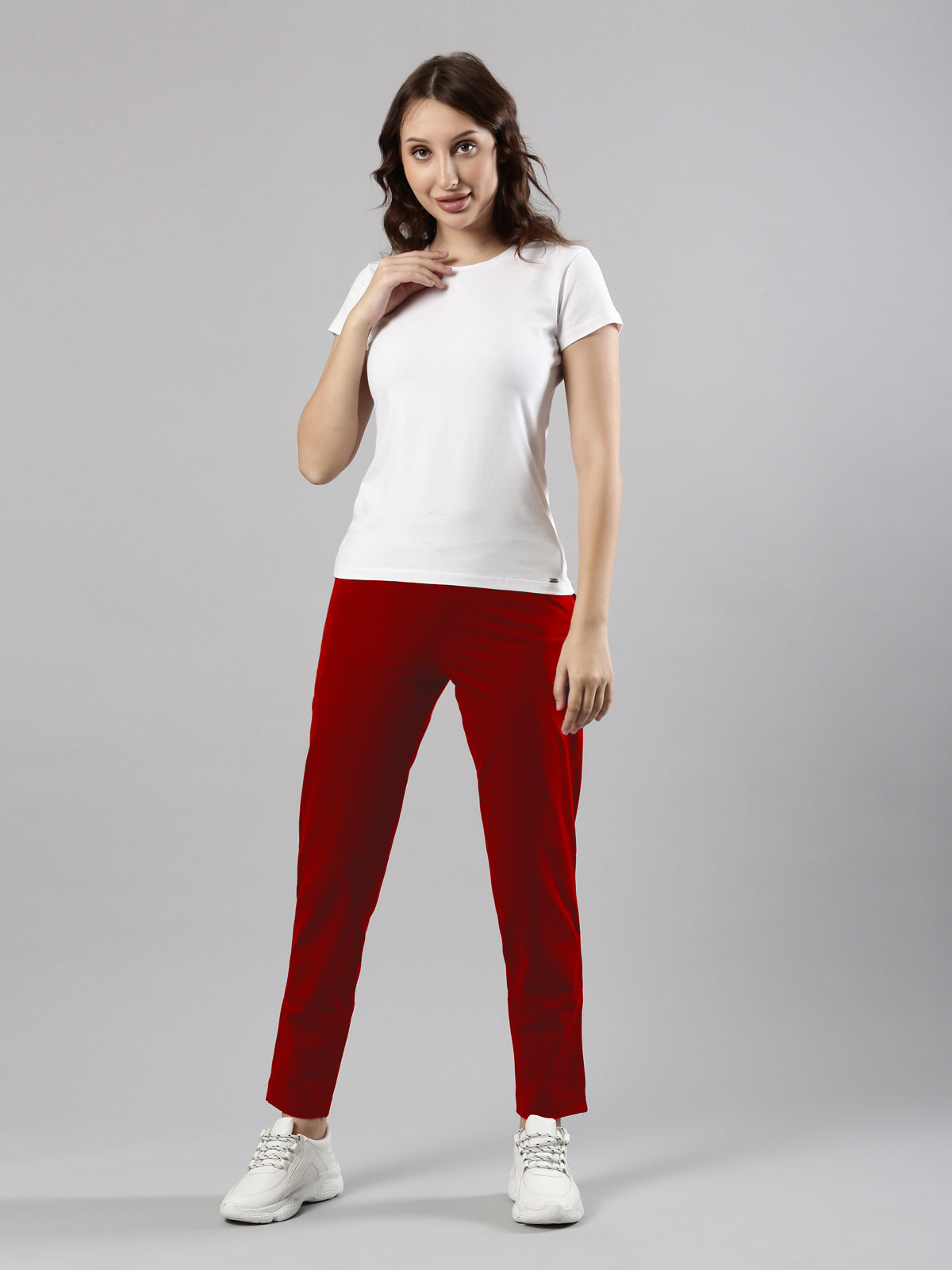 Women's Trouleg, Cotton Fabric with Elastic Waistband and Zip Pockets Maroon