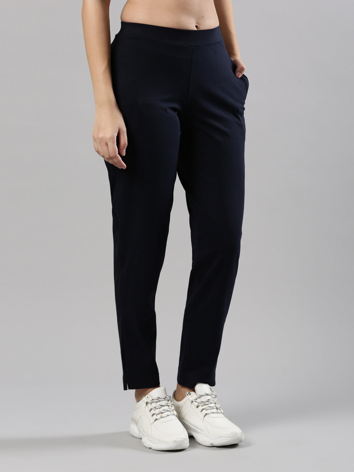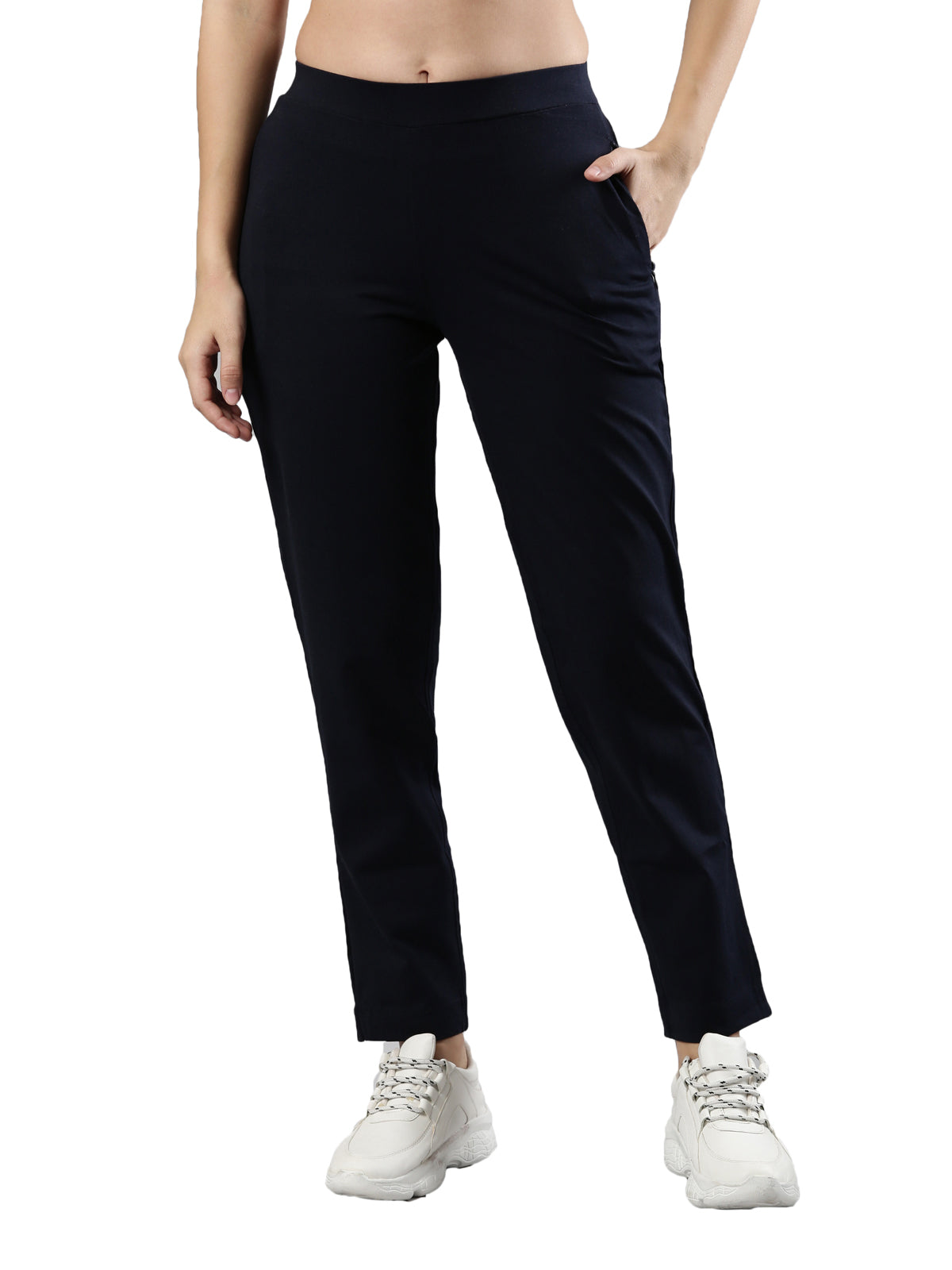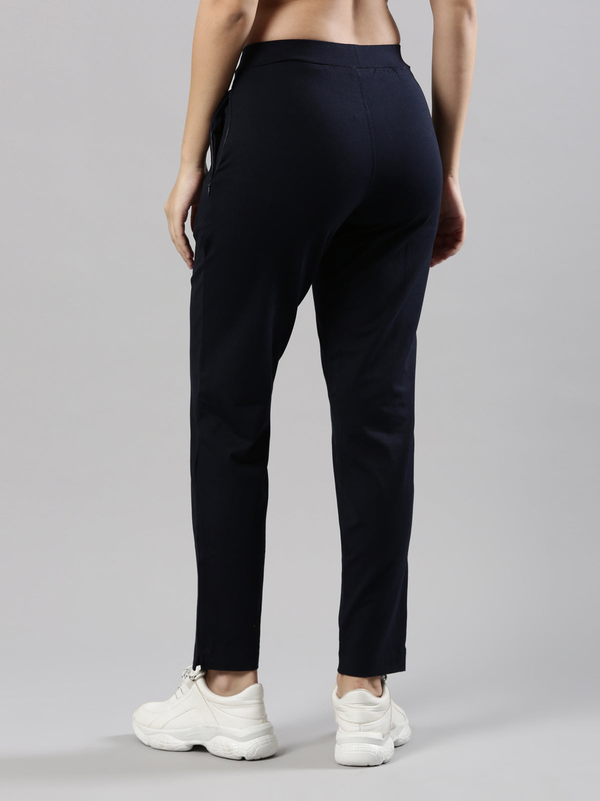 Women's Trouleg, Cotton Fabric with Elastic Waistband and Zip Pockets Navy Blue