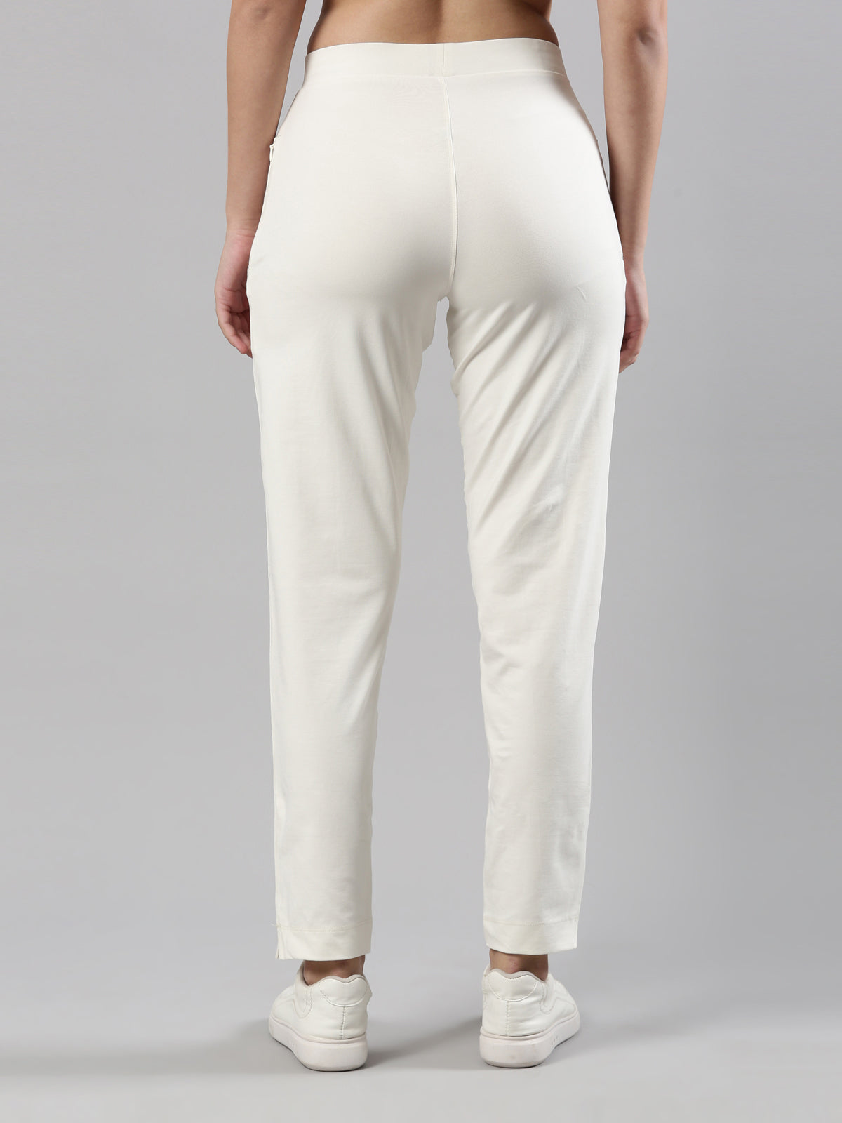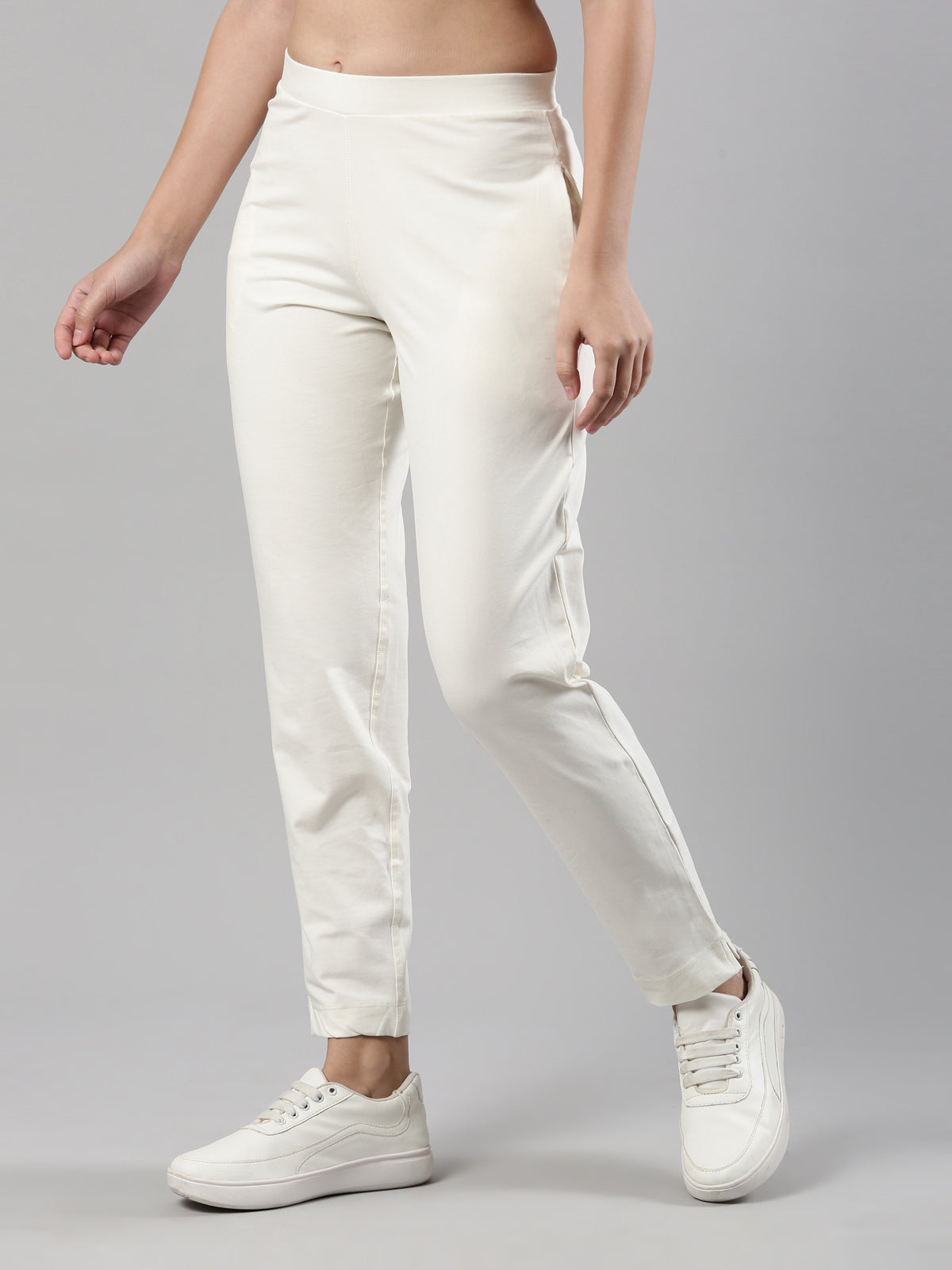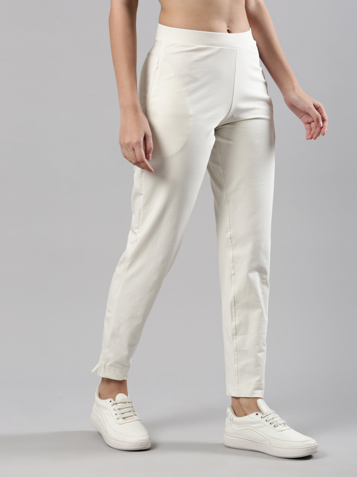 Women's Trouleg, Cotton Fabric with Elastic Waistband and Zip Pockets Off White