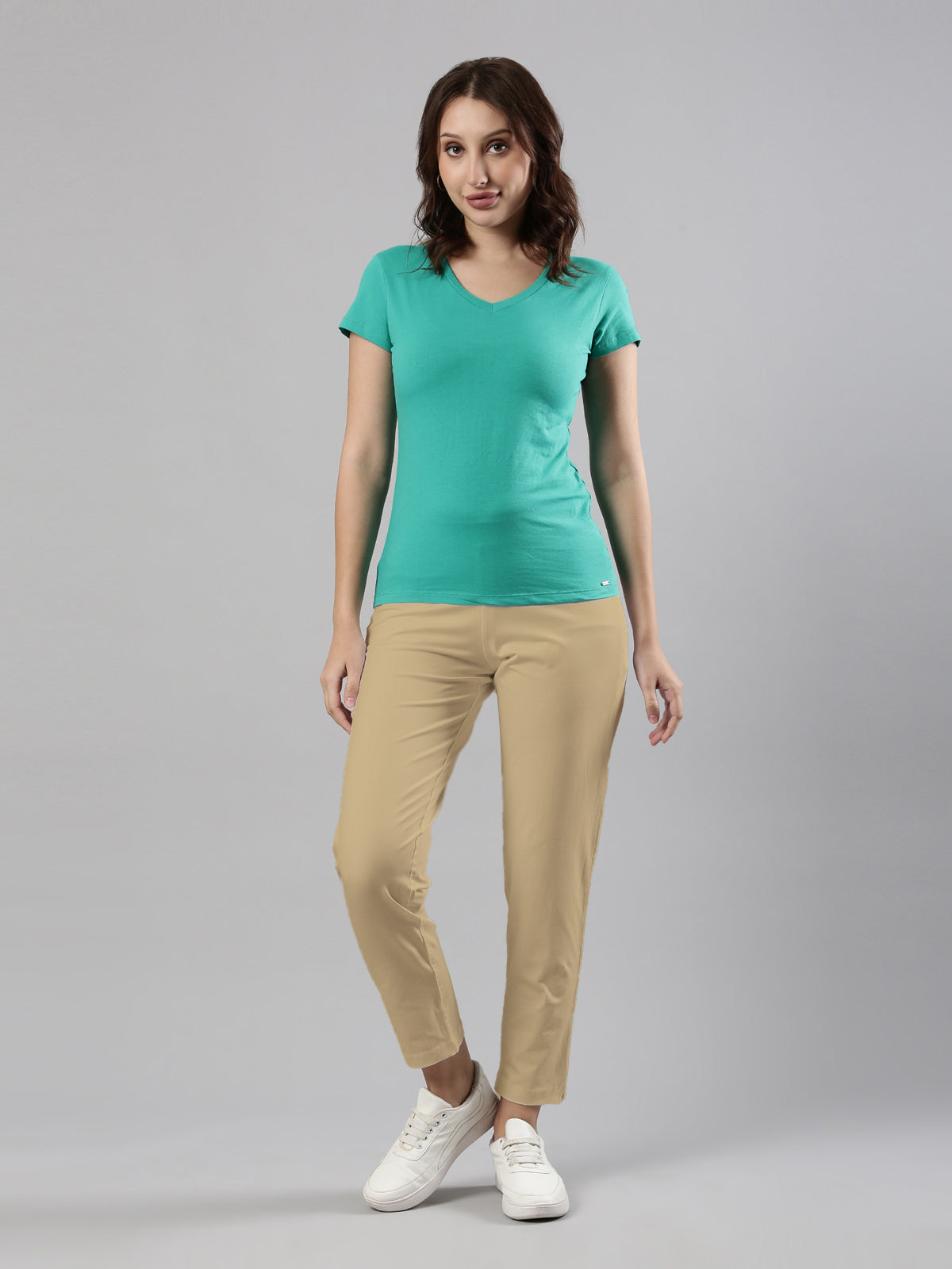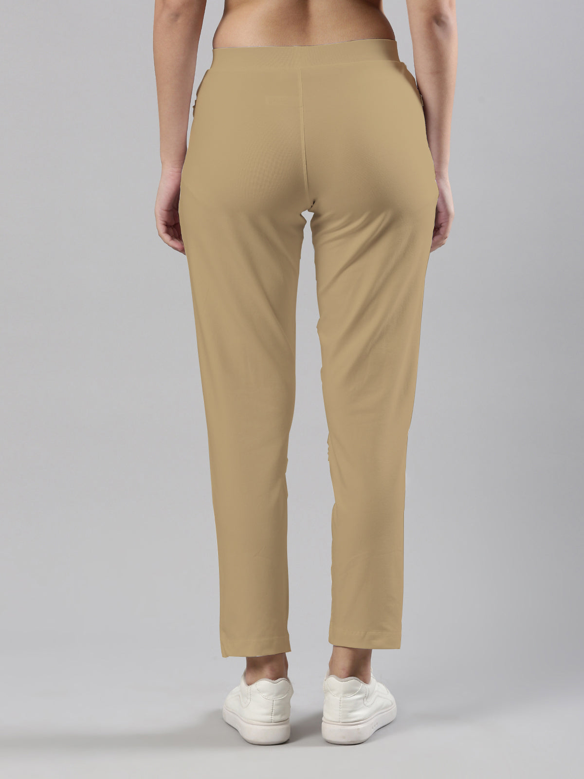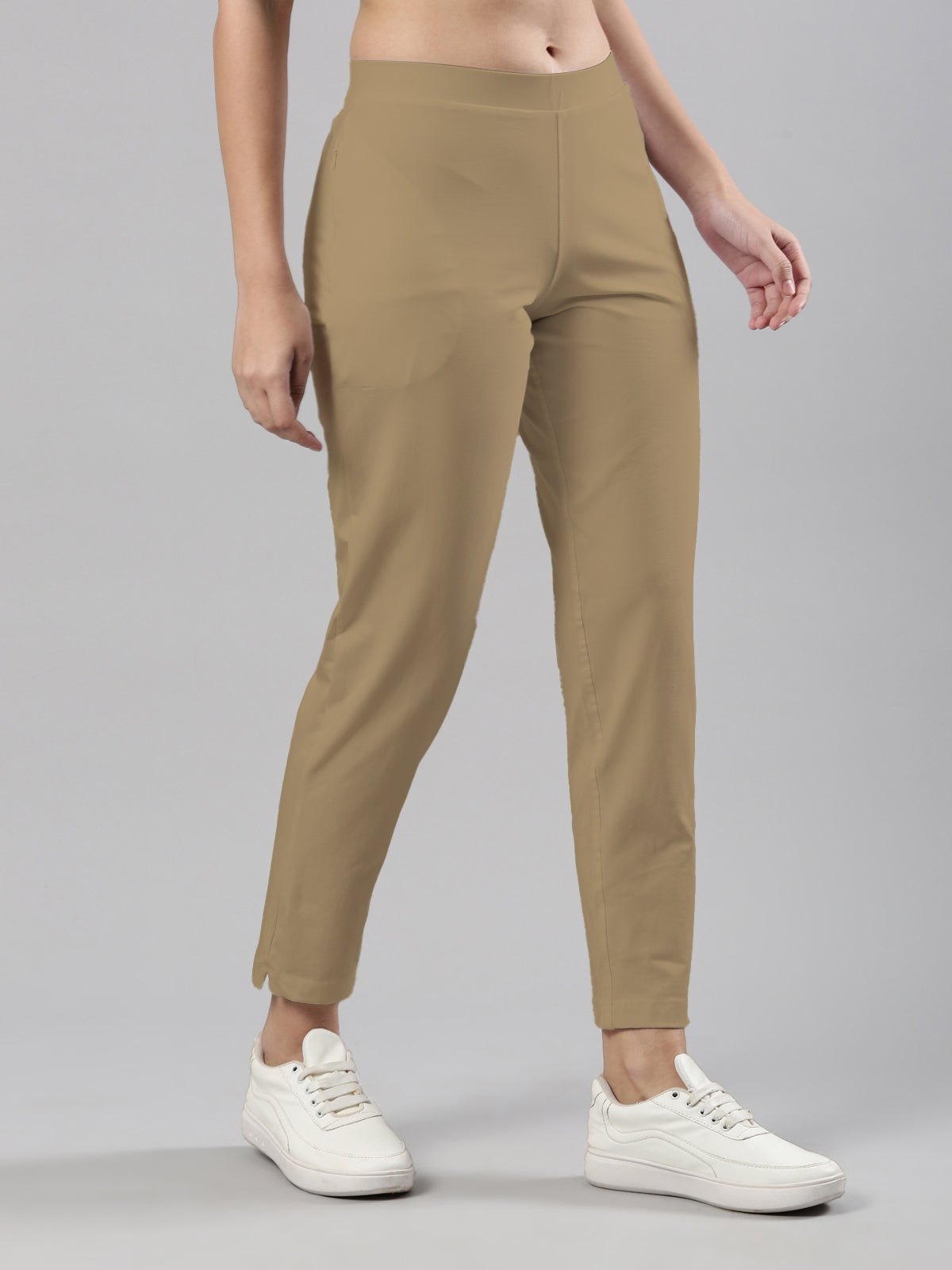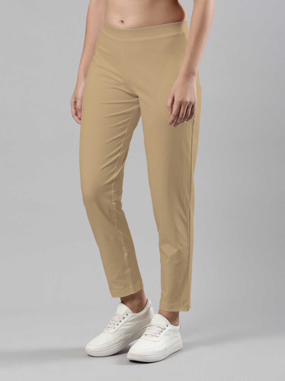 Women's Trouleg, Cotton Fabric with Elastic Waistband and Zip Pockets-beige