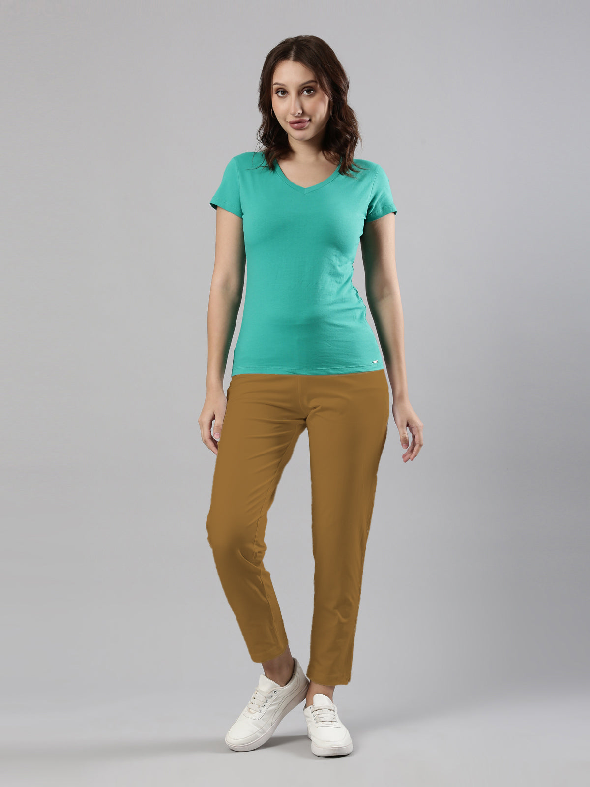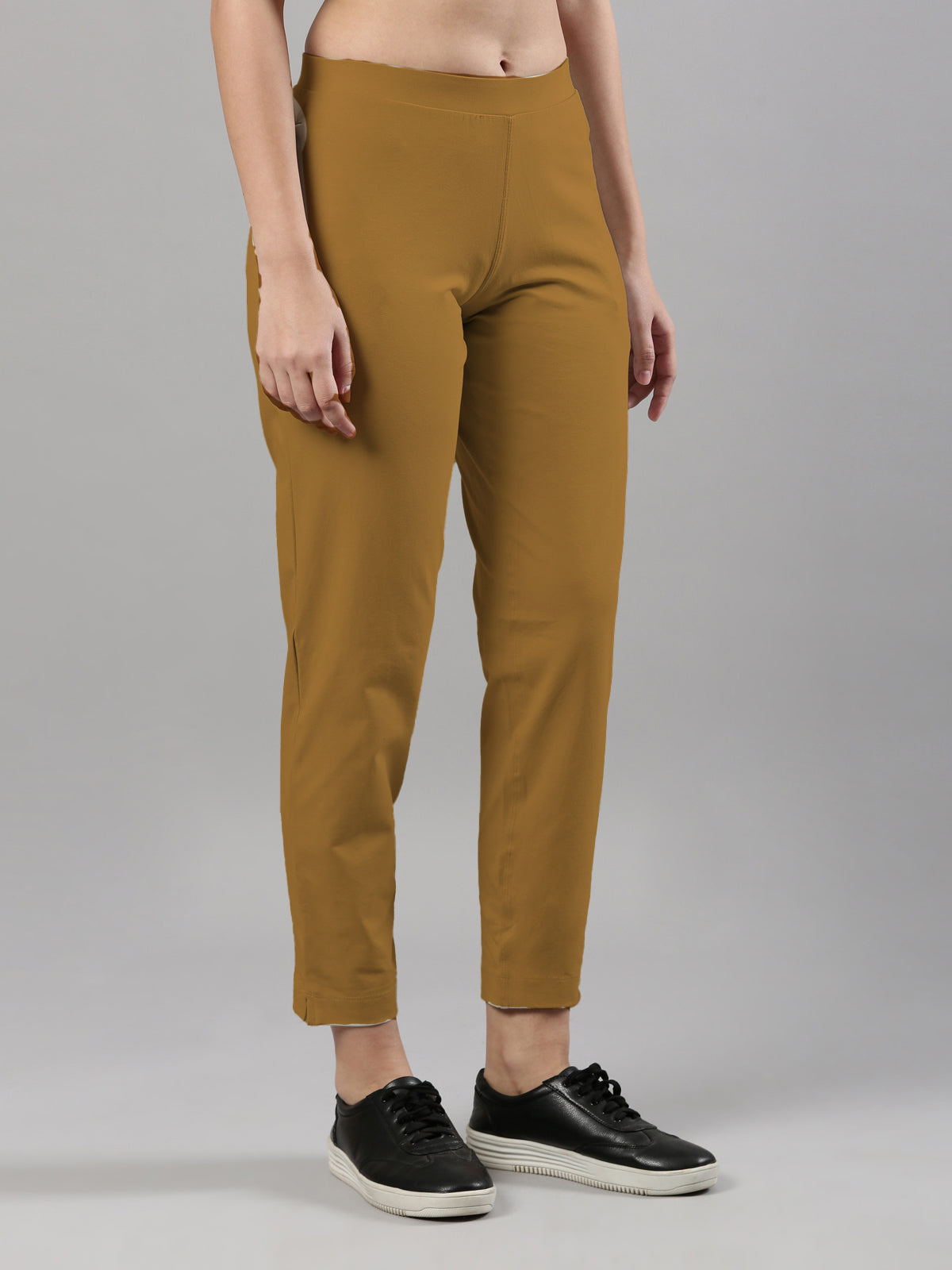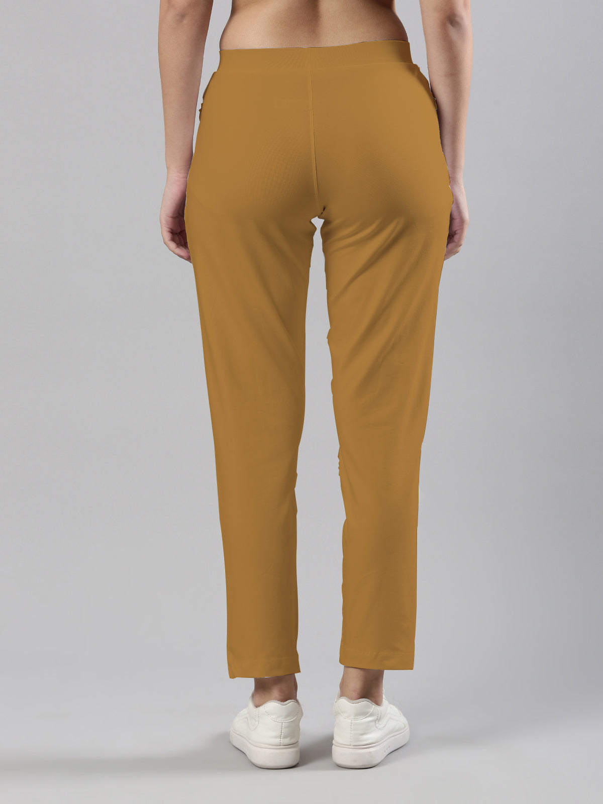 Women's Trouleg, Cotton Fabric with Elastic Waistband and Zip Pockets Mustard