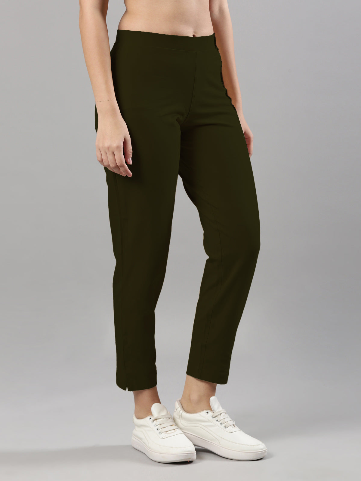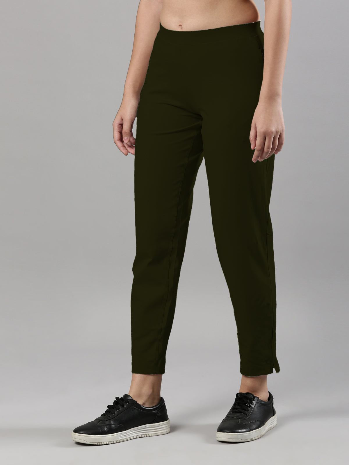 Women's Trouleg, Cotton Fabric with Elastic Waistband and Zip Pockets Pine Green