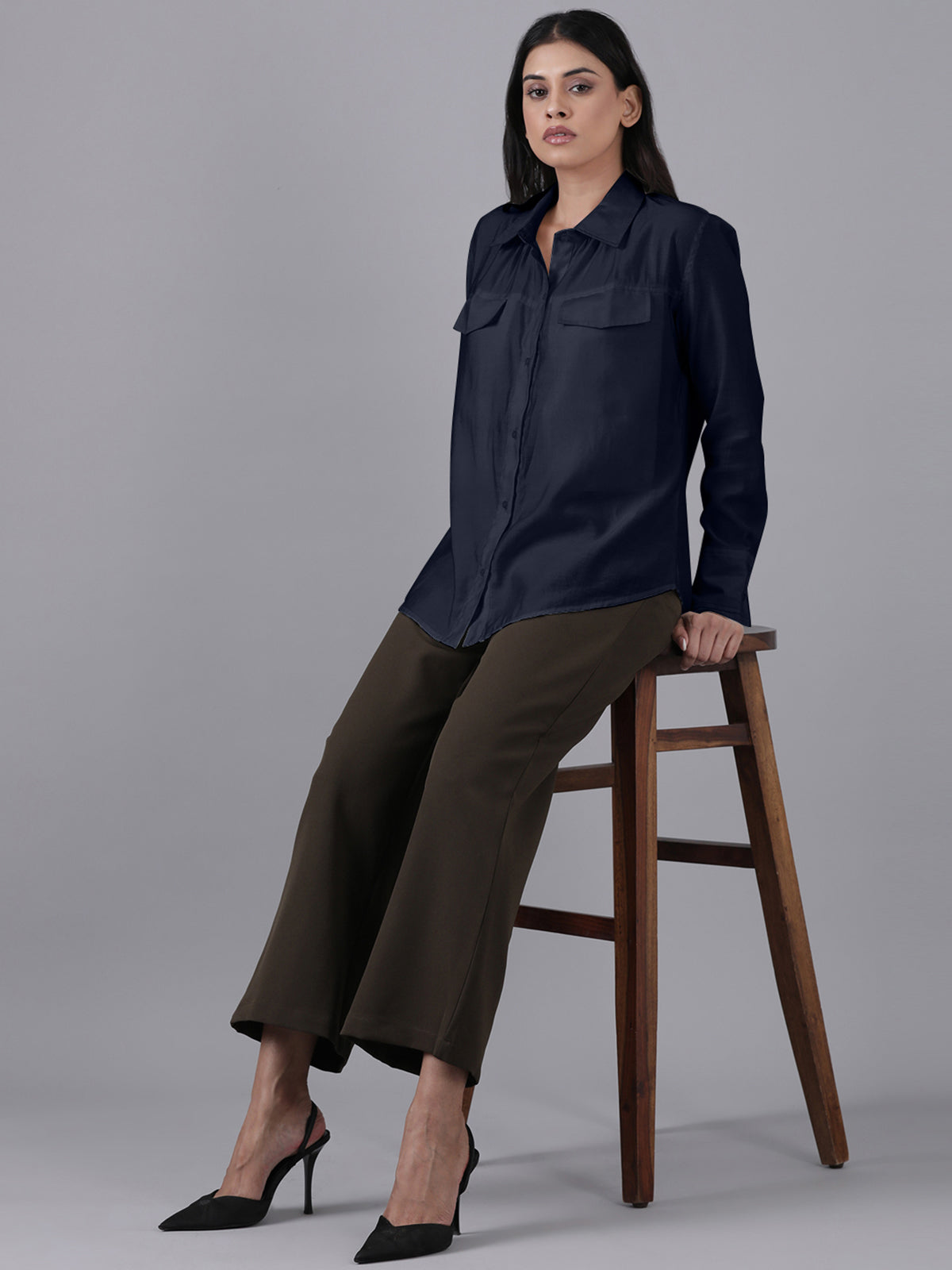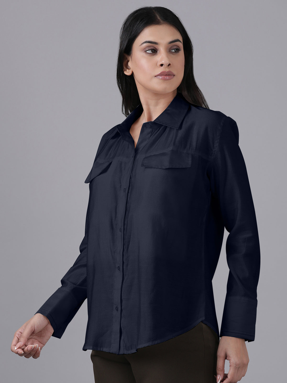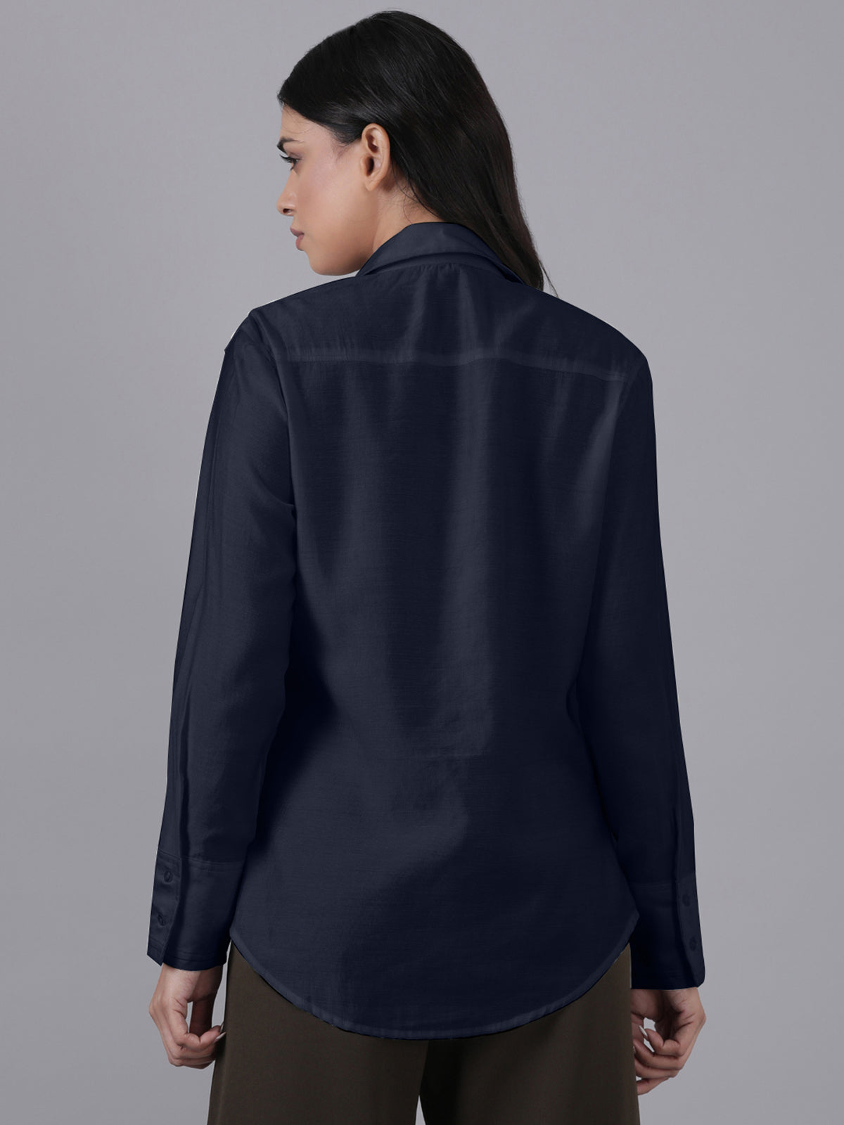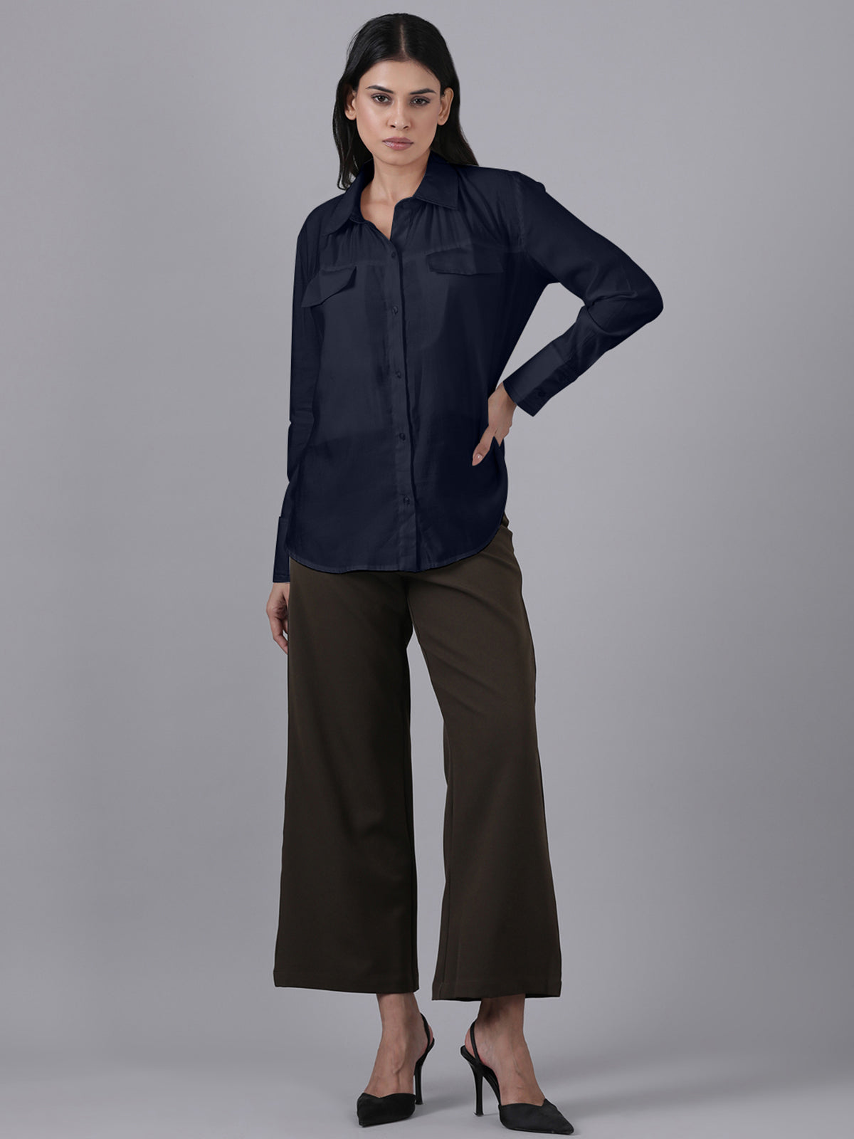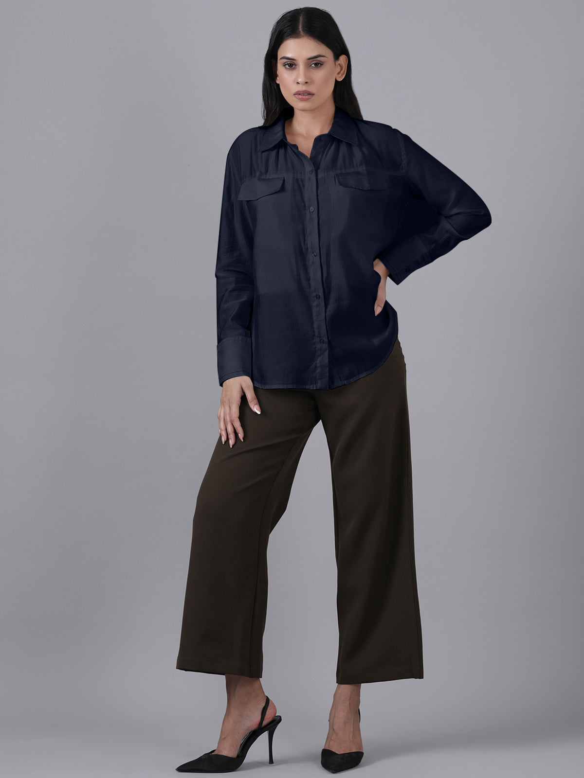 Femmora Women’s Solid Full Sleeve Shirt | Lightweight 80% Viscose 20% Polyester with Turn-Down Collar, Rounded Hem & Button-Up Front | Casual & Office Wear | Navy |Pack of 1