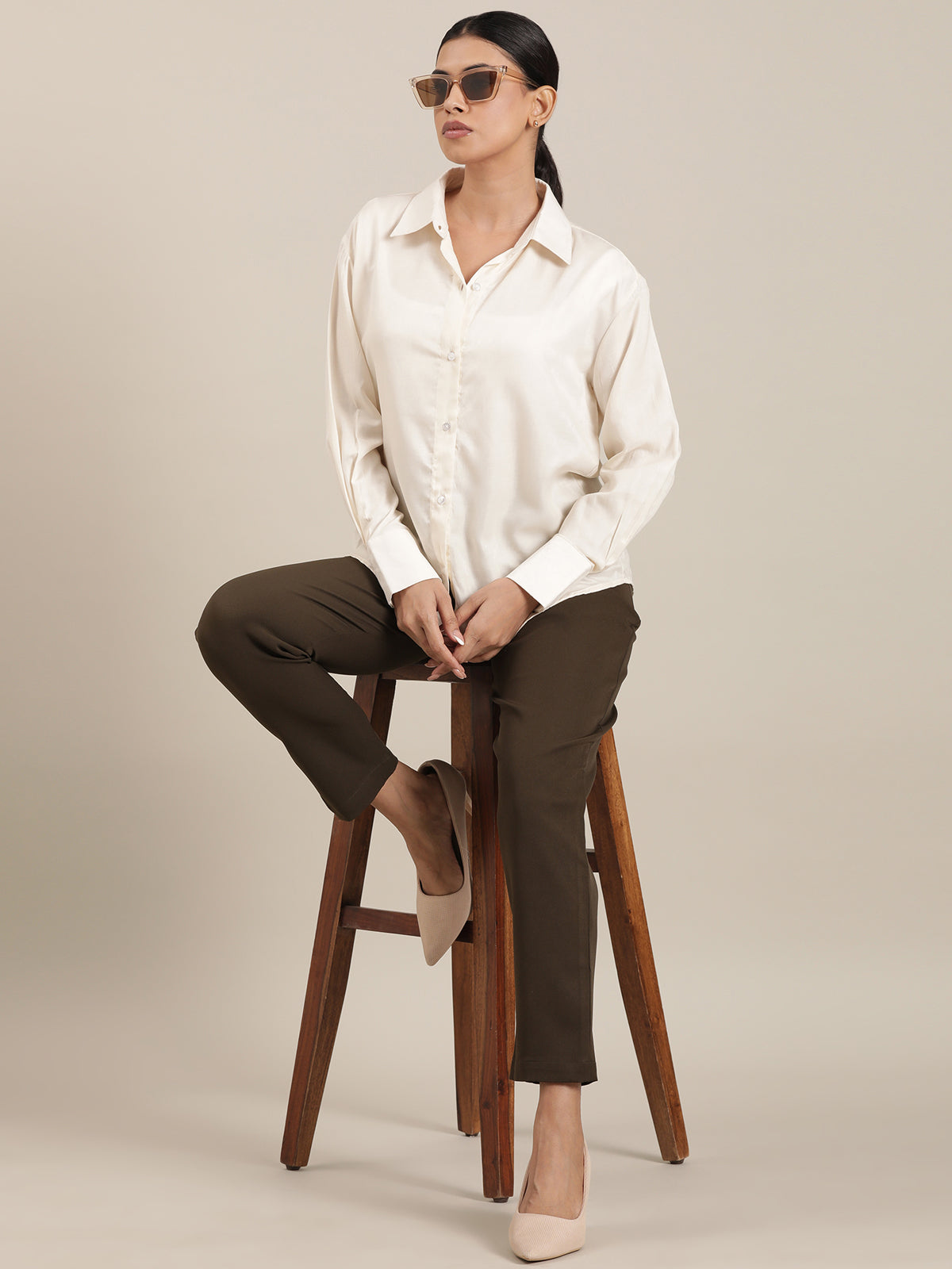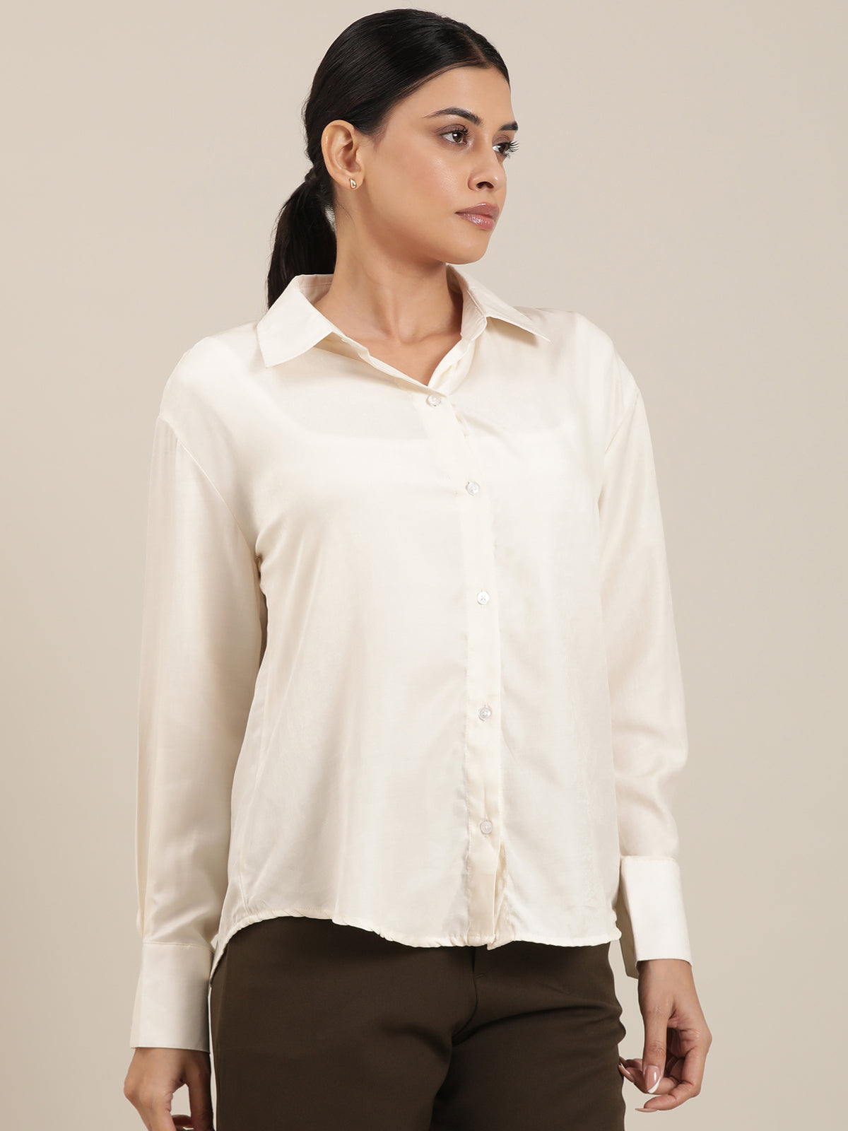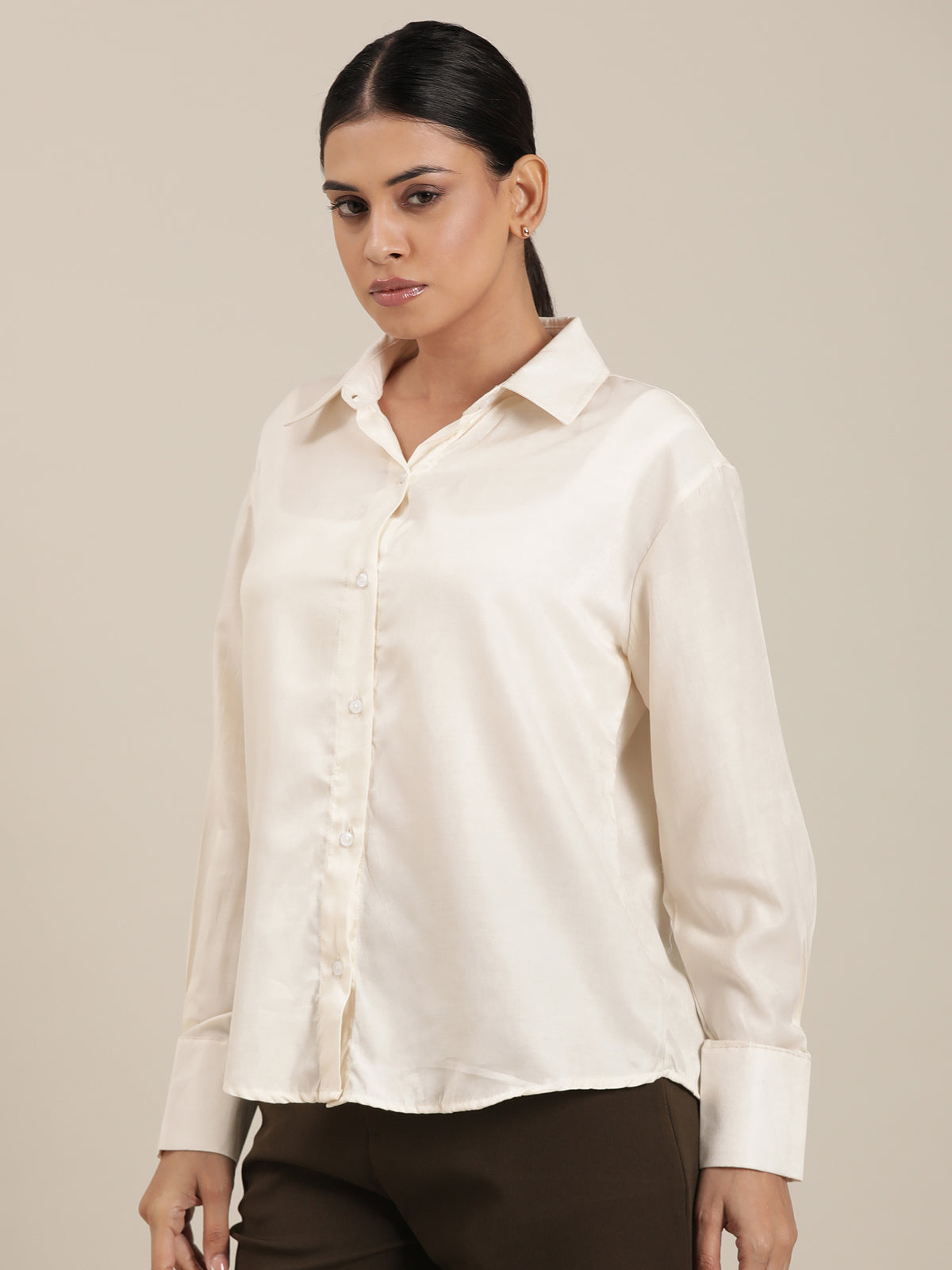 Femmora Women’s Shirt in Soft Bsy Satin-Viscose | Regular Fit Full Sleeve Button-Up Shirt with Rounded Hem | Casual & Office Wear | Off.White |Pack of 1