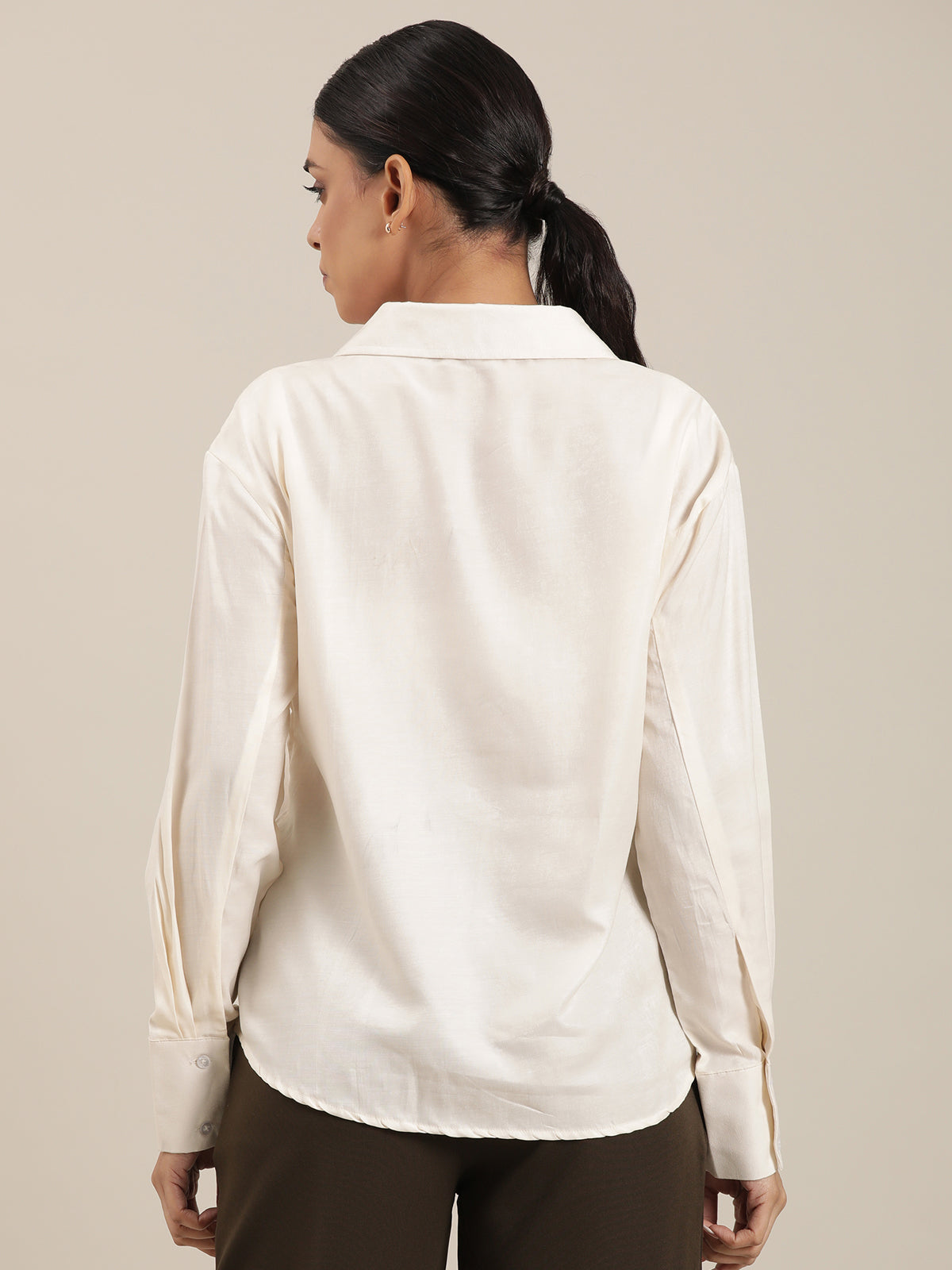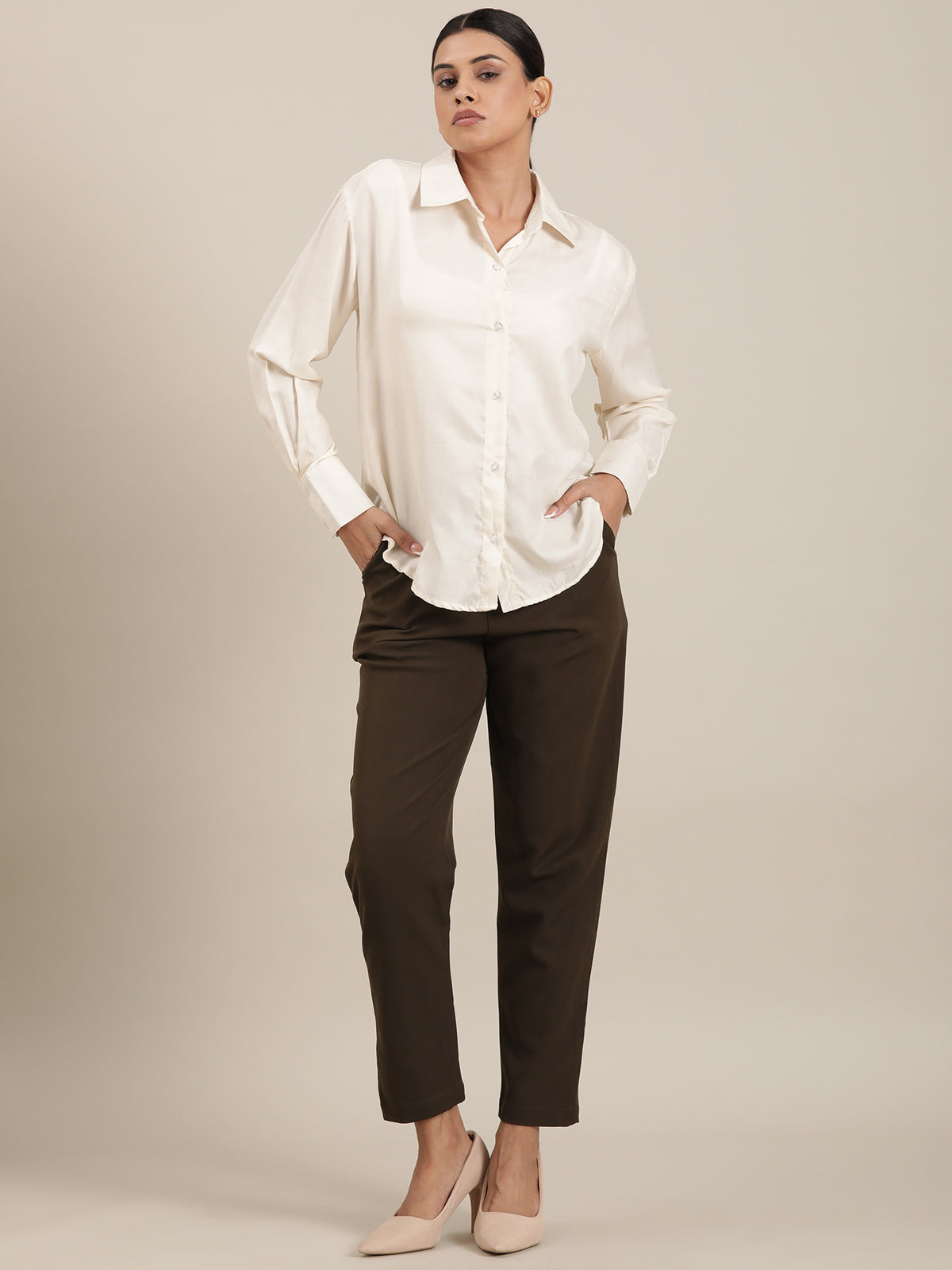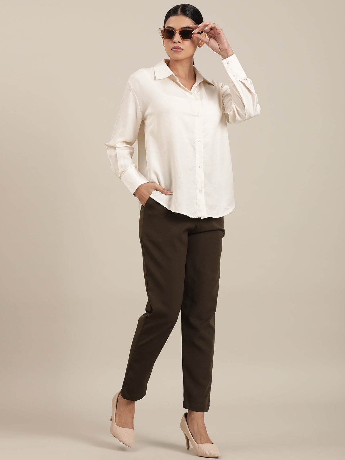 Femmora Women’s Shirt in Soft Bsy Satin-Viscose | Regular Fit Full Sleeve Button-Up Shirt with Rounded Hem | Casual & Office Wear | Off.White |Pack of 1