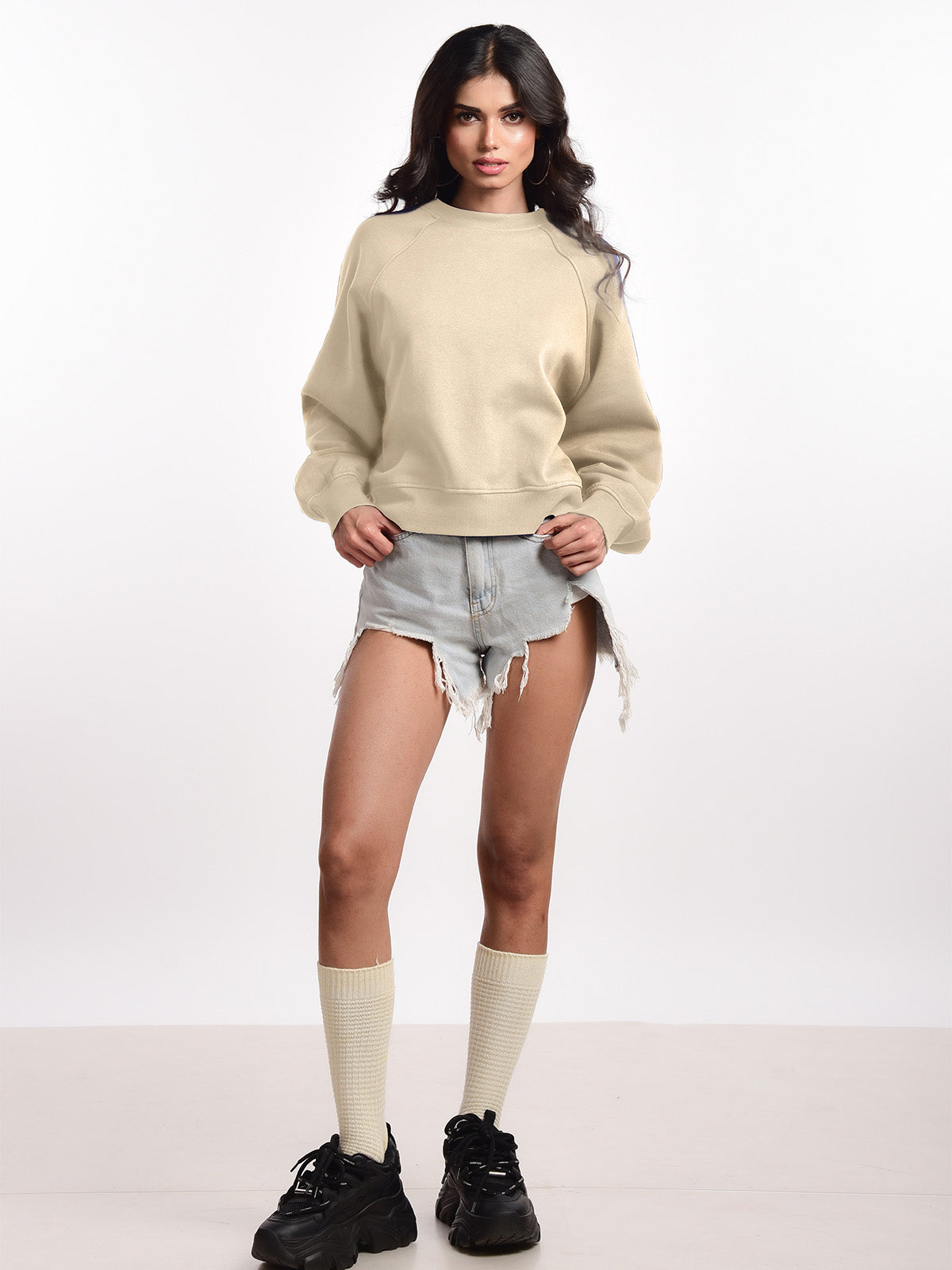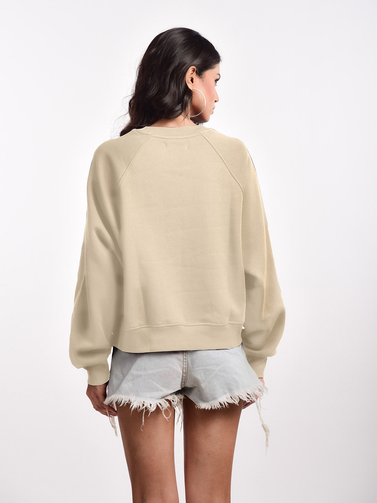 Femmora Premium 100% Cotton Loose Fit Raglan Sleeve Causal Pullover for Women | Knitted Fabric | Solid Sweatshirt | Cozy Winter Wear – Beige (Pack of 1)