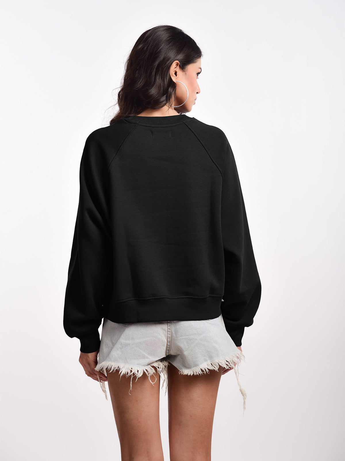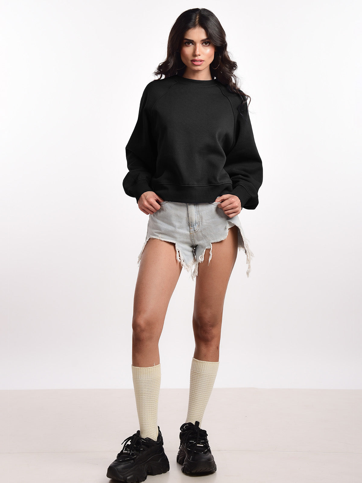 Femmora Premium 100% Cotton Loose Fit Raglan Sleeve Causal Pullover for Women | Knitted Fabric | Solid Sweatshirt | Cozy Winter Wear – Black (Pack of 1)