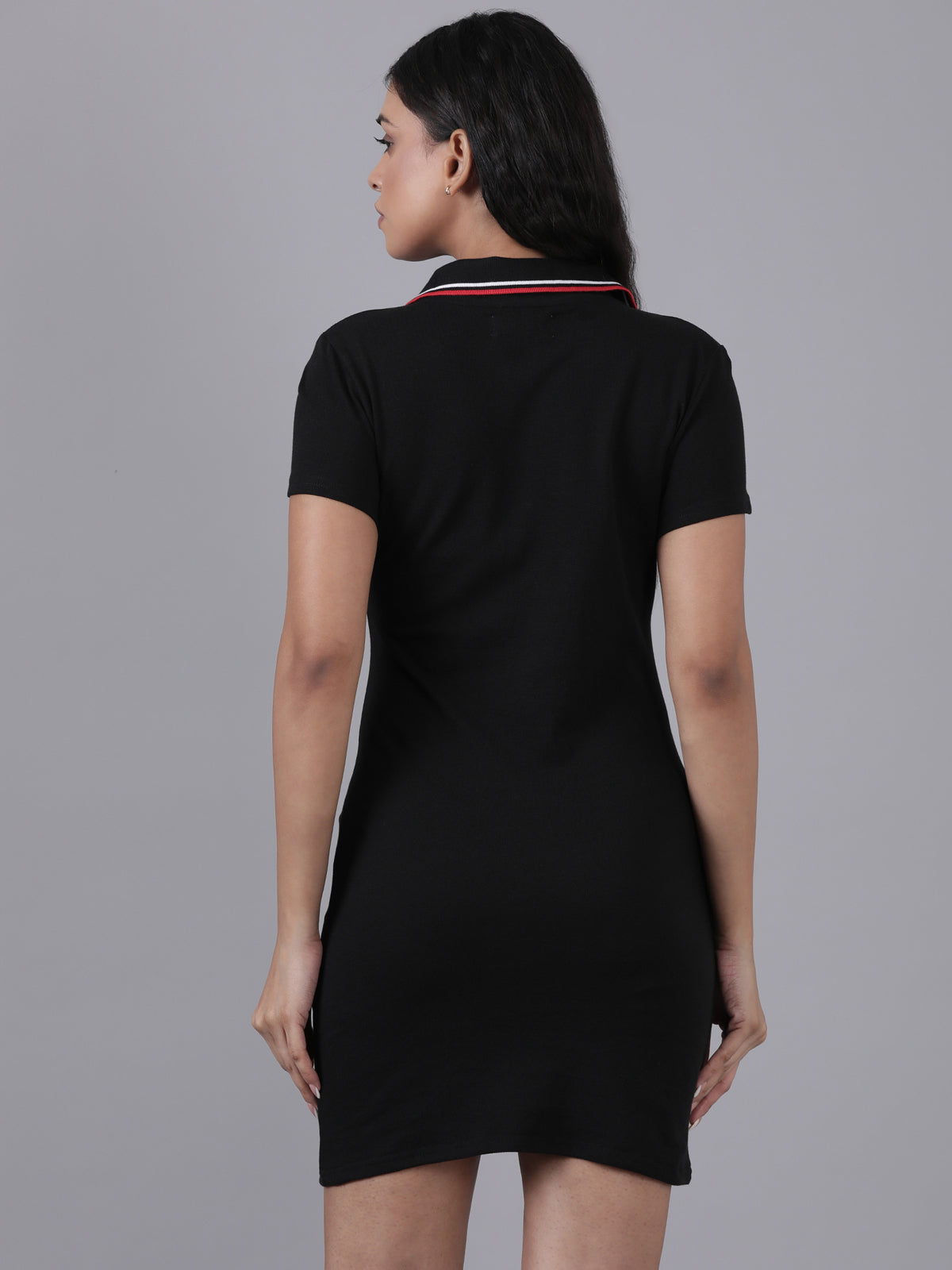 Femmora Women’s Short Cotton T-Shirt Dress | Slim Fit Bodycon Polo Collar Dress, Half-Button Placket, Short Sleeves, Comfortable Smart-Casual Wear | Black |Pack of 1