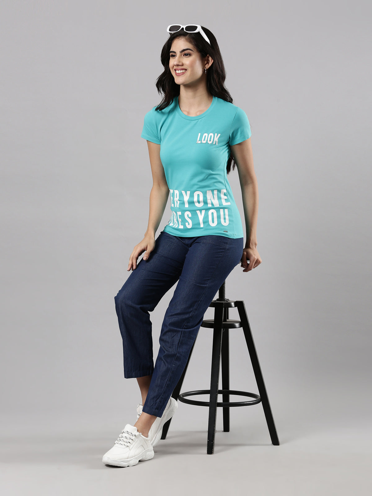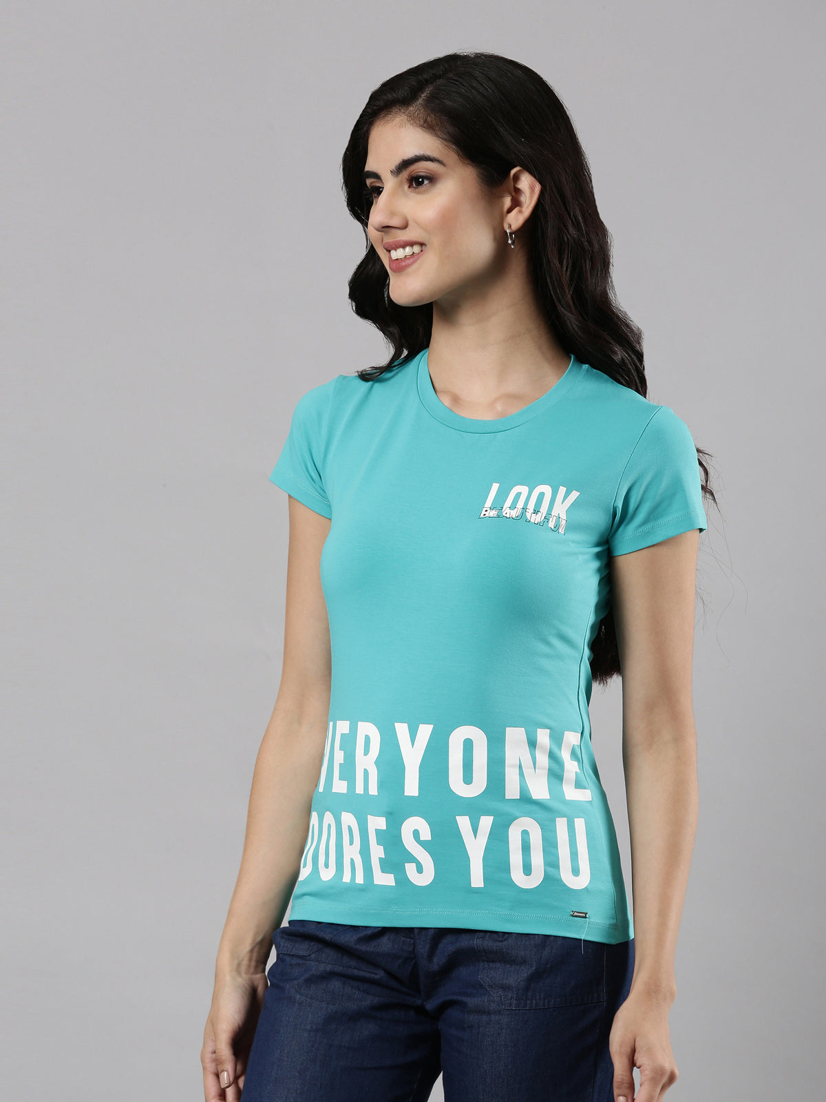 Printed Round Neck T-shirt, Cotton Fabric for Women|Half Sleeves Ceramic