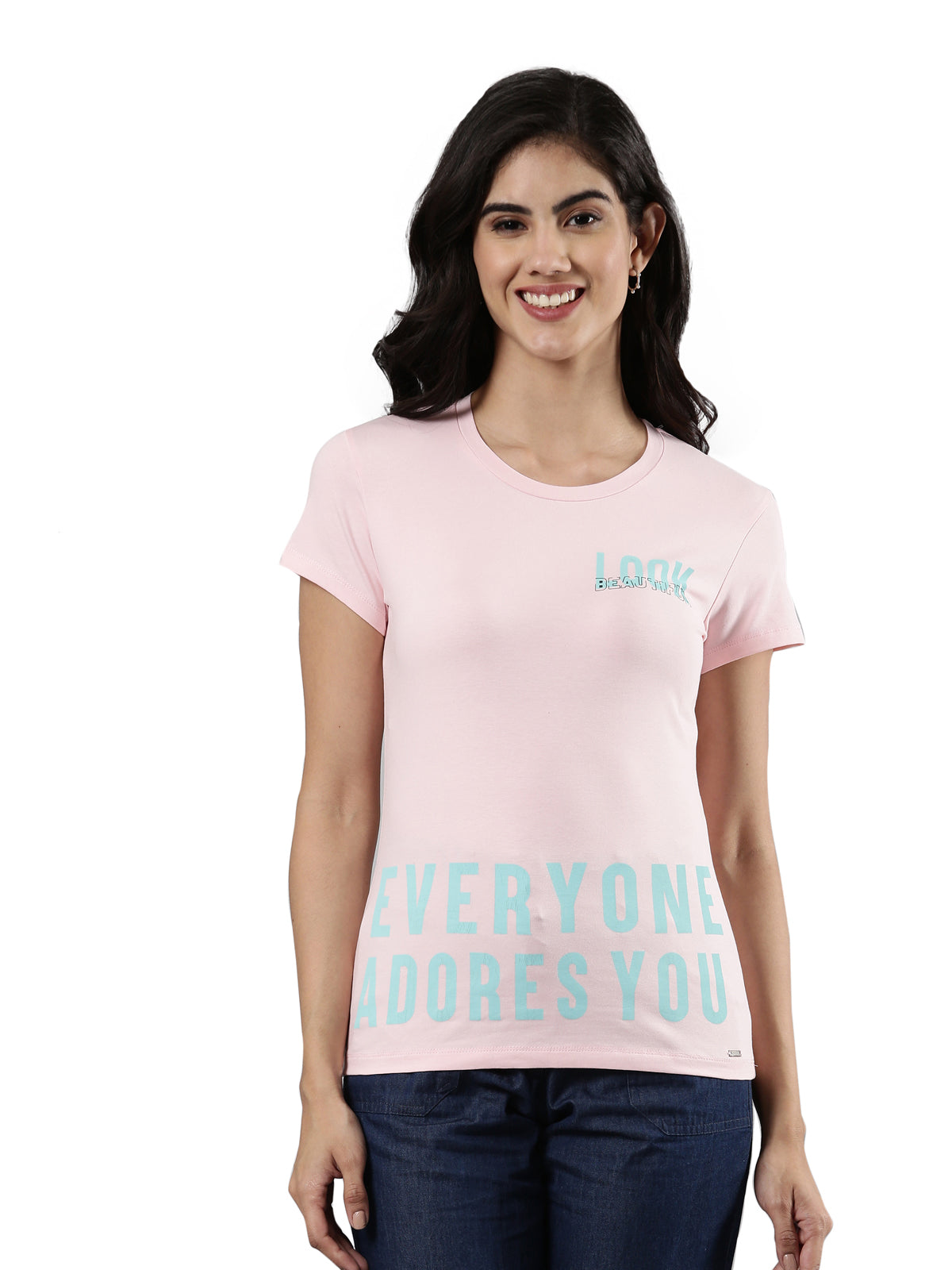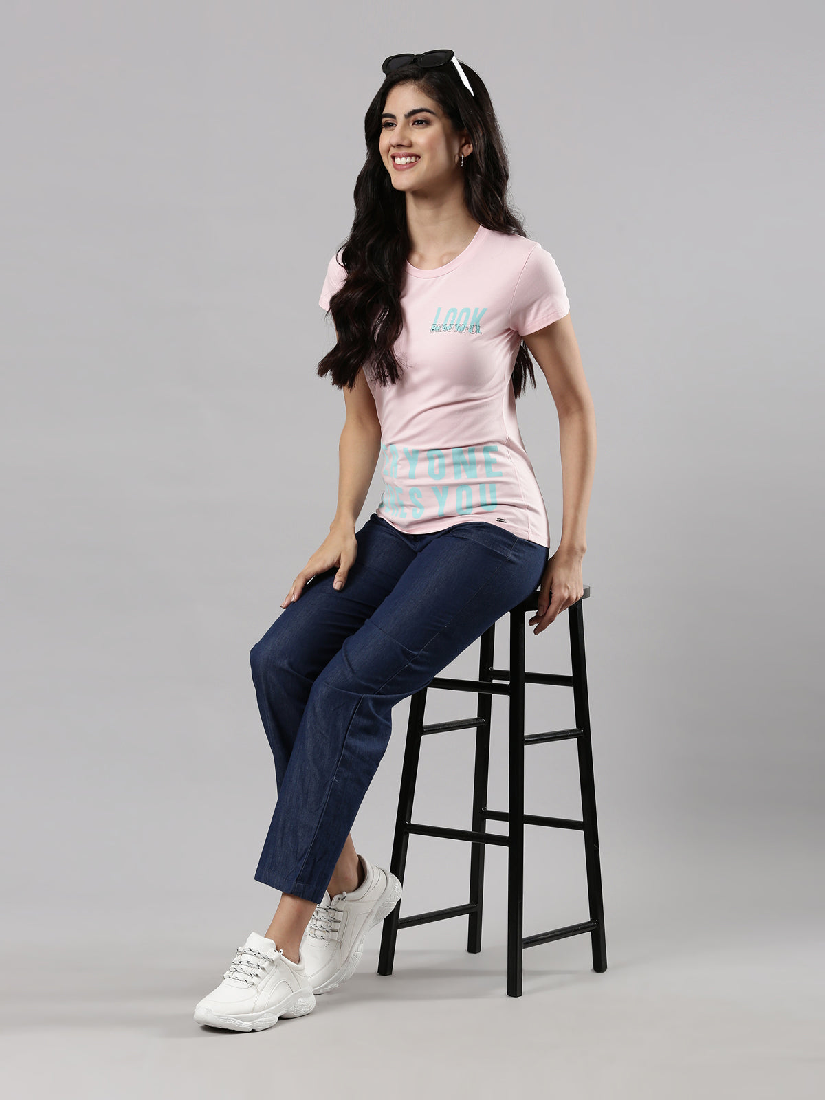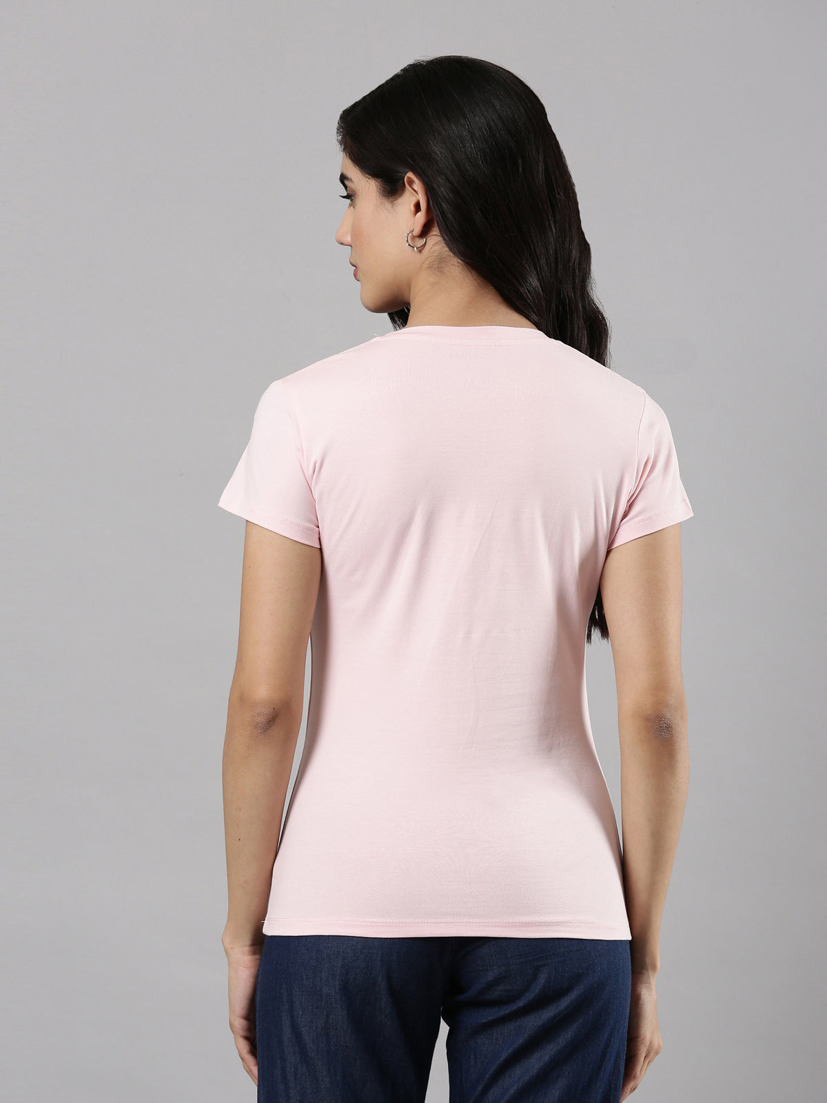Printed Round Neck T-shirt, Cotton Fabric for Women|Half Sleeves Light Pink
