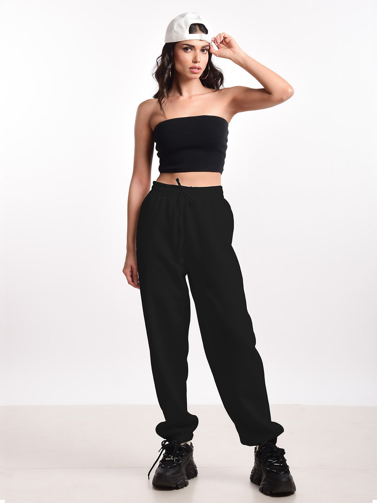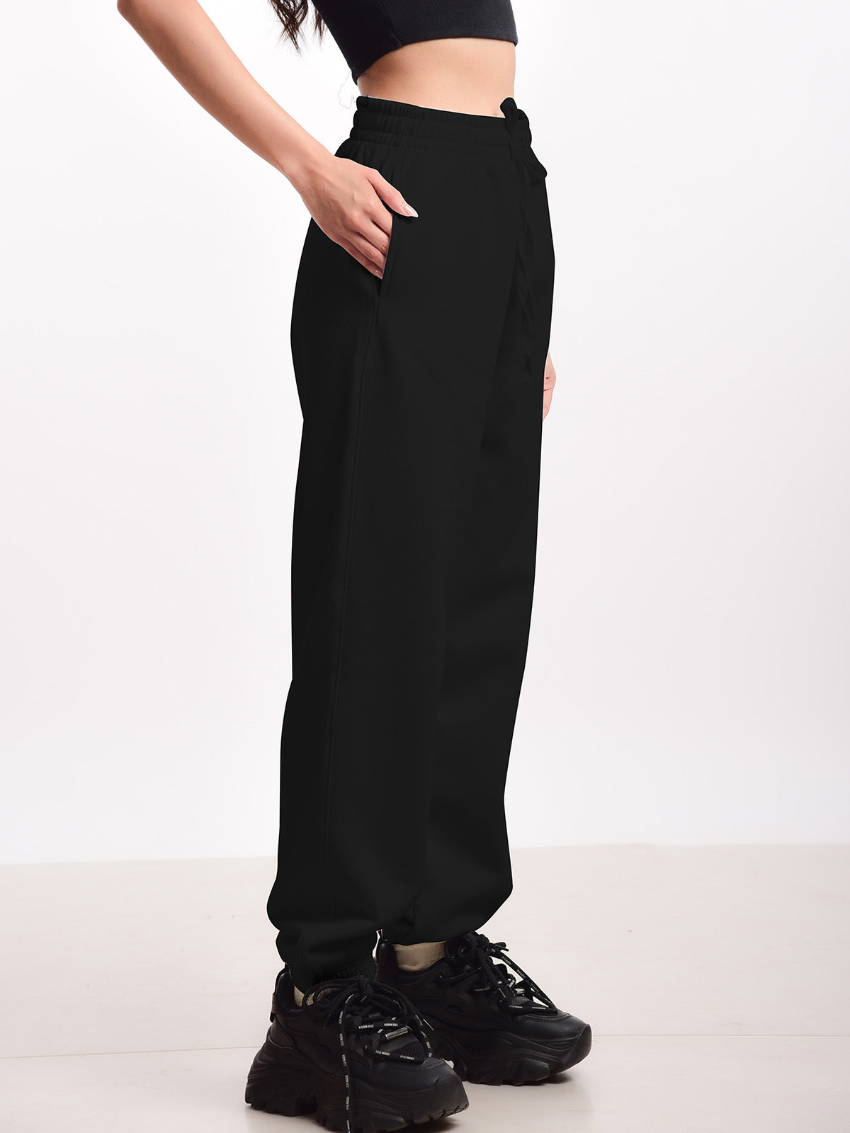 Femmora Premium 100% Cotton Winter Jogger for Women | Soft Knitted Fabric | High-Rise Waist, Relaxed Fit, Drawstring Closure & 2 Side Pockets | Cozy & Breathable Lounge Joggers – Black (Pack of 1)