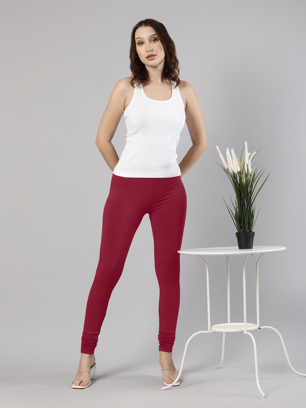 Body-Hugging Churidar Legging | Soft Cotton, Elastic Waistband Persian Red