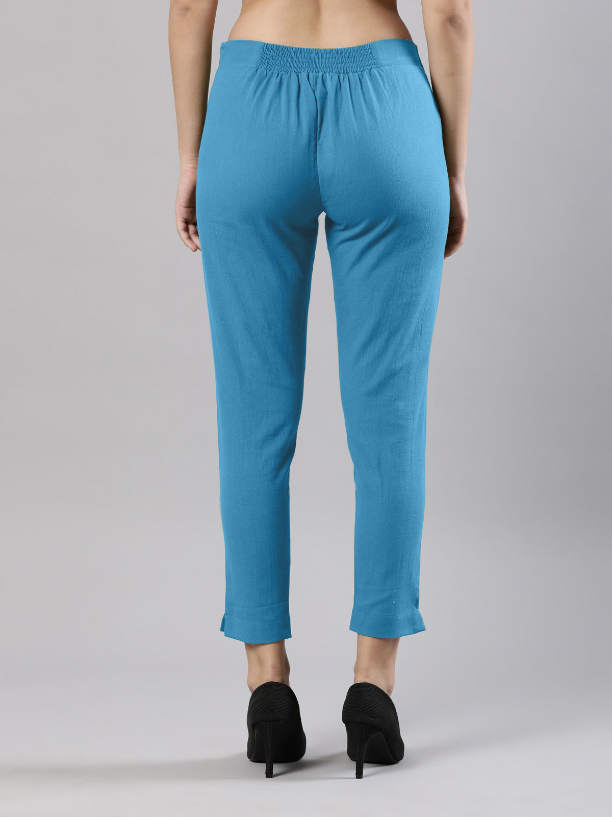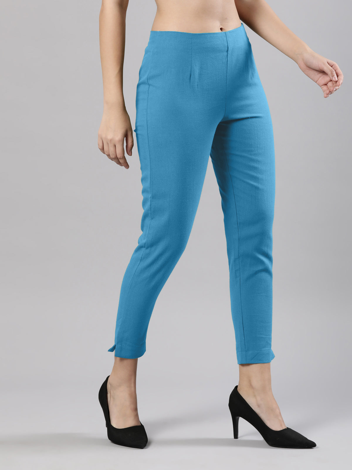 Straight Pant | Breathable Cotton, Side Zip and Button Persian Blue