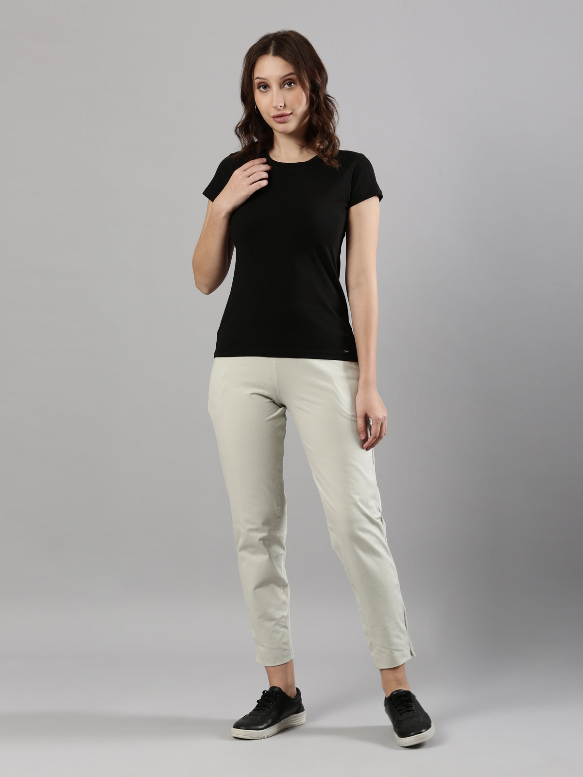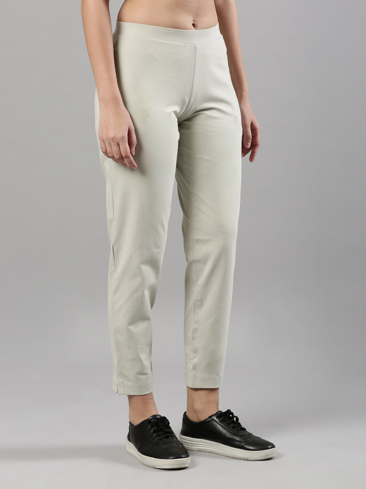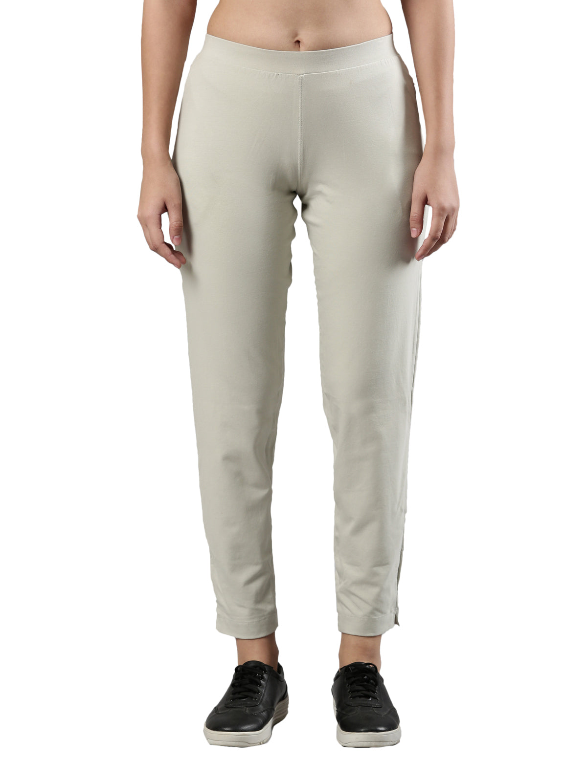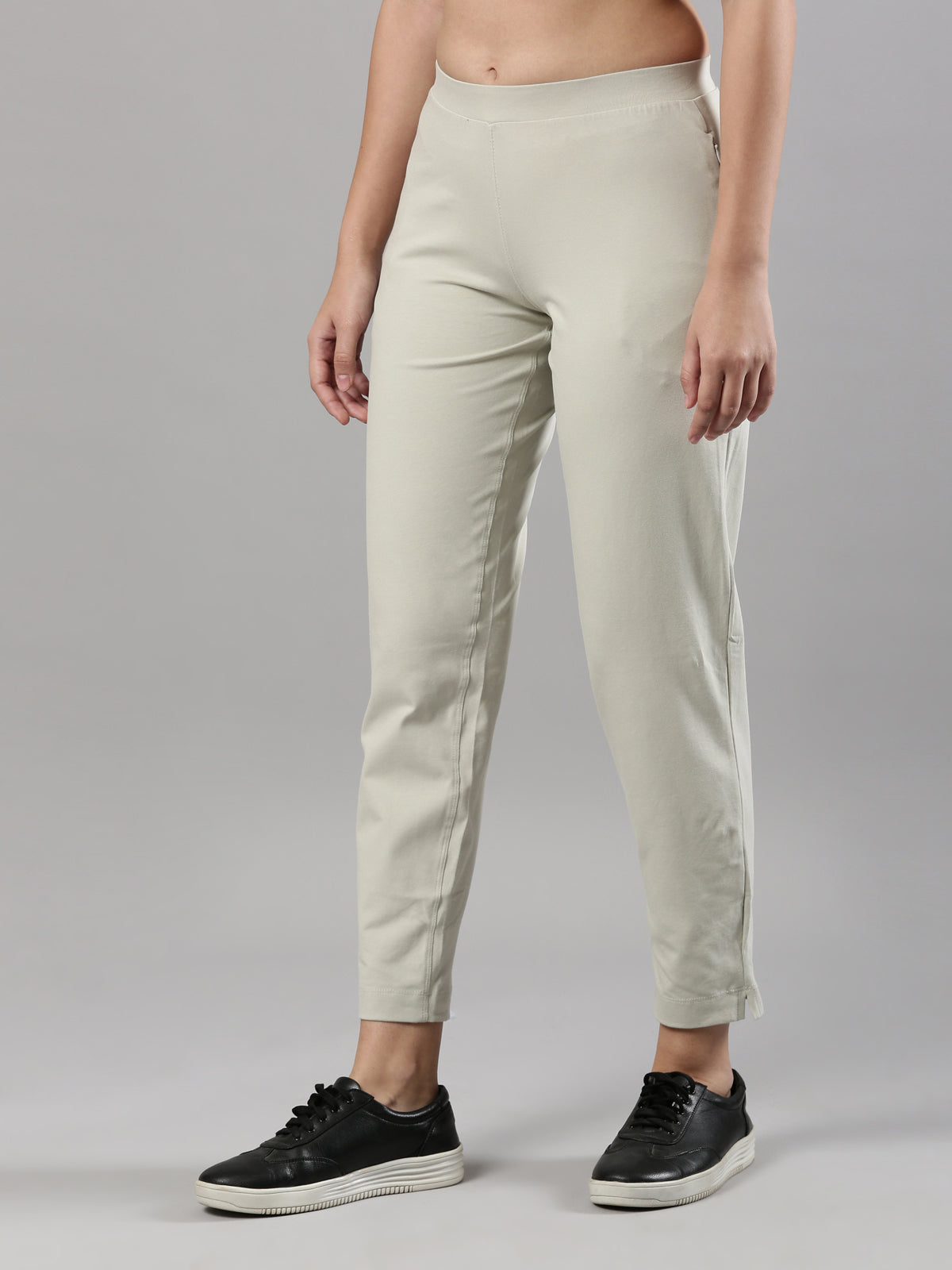 Women's Trouleg, Cotton Fabric with Elastic Waistband and Zip Pockets Light Stone